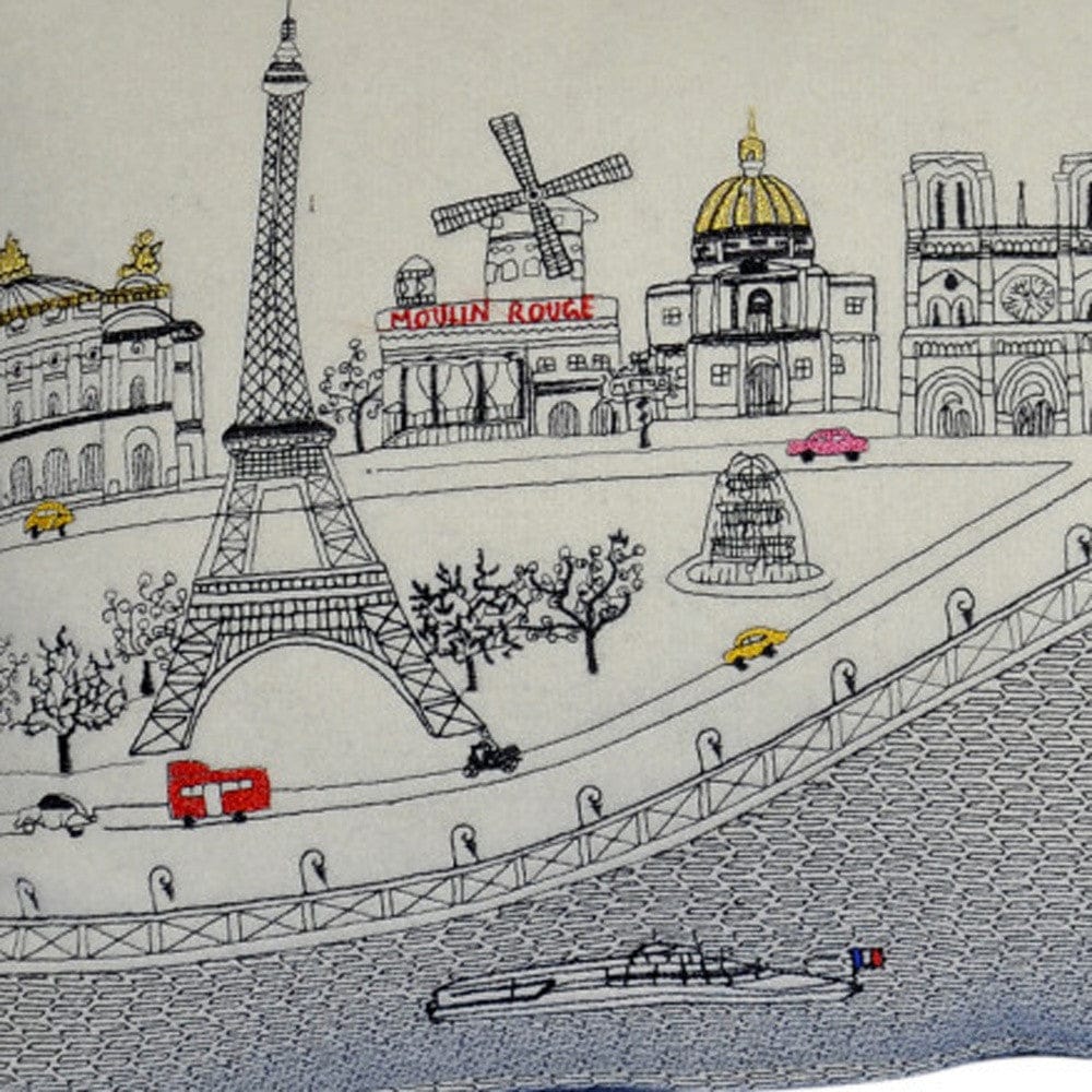 Showcase one of the most famous cities in the world with our Cream Color Paris Daylight Skyline Standard Size Lumbar Decorative Pillow. The daylight view of Paris France, including it's famous streets and cafes along with famous landmarks including the Eiffel Tower and Champs Elysees is a modern whimsical way to bring this iconic cityscape to life. Made of a wool/nylon blend, this high quality stitched decorative pillow features black on white embroidered artwork mixed with pops of color that highlight important and recognizable icons from this fabulous city. This pillow makes a great gift, decorative accent and conversation piece. 4" x 24" x 14"