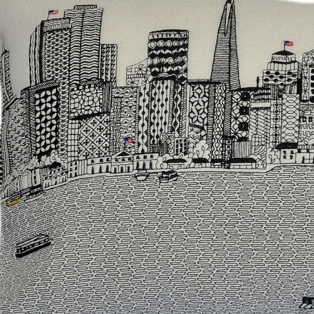 Showcase one of the most famous cities in the world with our Cream Color San Francisco Daylight Skyline Prince Size Lumbar Decorative Pillow. The daylight view of San Fran from the Bay is one of the most famous landscapes in the world. The gorgeous art features many famous landmarks including the Golden Gate Bridge, rendering a modern whimsical way to bring this iconic cityscape to life. Made of a wool/nylon blend, this high quality stitched decorative pillow features black on white embroidered artwork mixed with pops of color that highlight important and recognizable icons from this fabulous city. This pillow makes a great gift, decorative accent and conversation piece. 4" x 24" x 14"