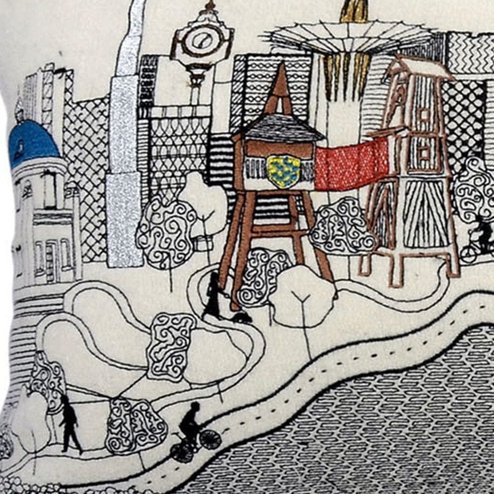 Showcase this famous city, with our Cream Color Tulsa Daylight Skyline Prince Size Lumbar Decorative Pillow. The daylight view of Tulsa from the Arkansas River, is picture perfect. The gorgeous art features many famous landmarks and references for this destination city, rendering a modern whimsical way to bring this iconic cityscape to life. Made of a wool/nylon blend, this high quality stitched decorative pillow features black on white embroidered artwork mixed with pops of color that highlight important and recognizable icons from this popular and bustling city. This pillow makes a great gift, decorative accent and conversation piece. 4" x 24" x 14"