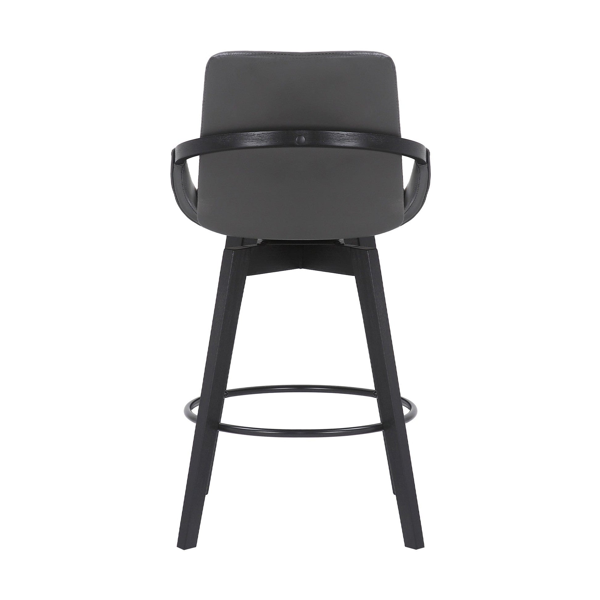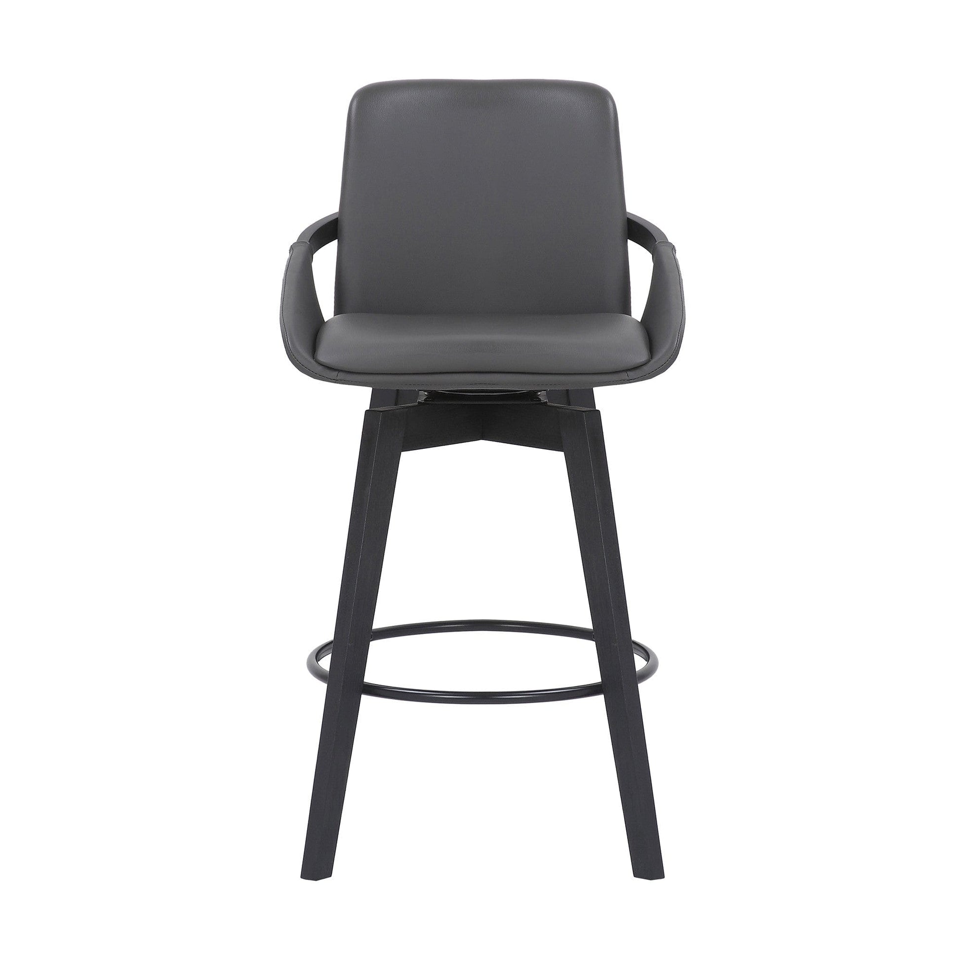26" Luxurious Grey Faux Leather and Black Wood Swivel Bar Stool
