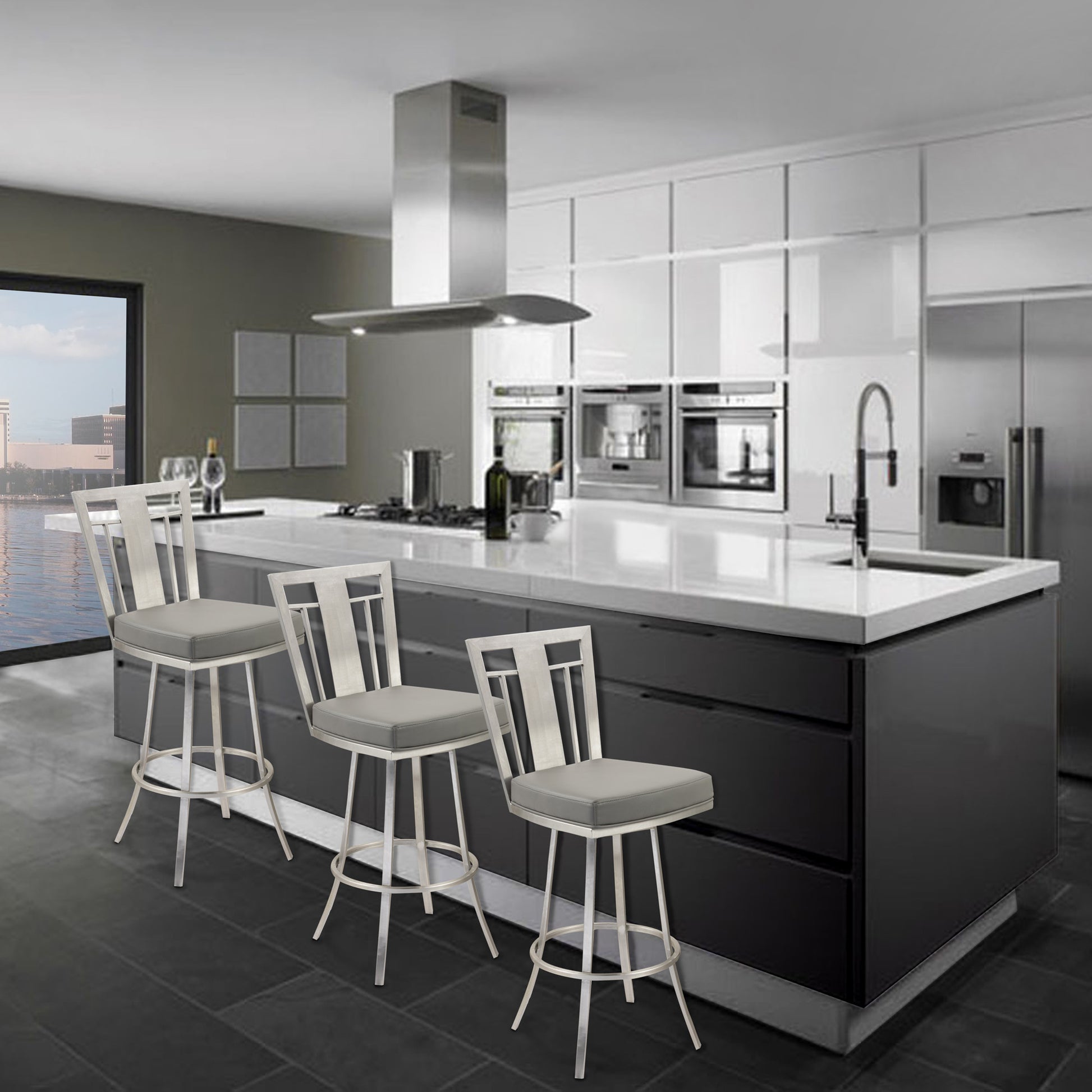 26" Transitional Grey Faux Leather Stainless Steel Swivel Bar Stool