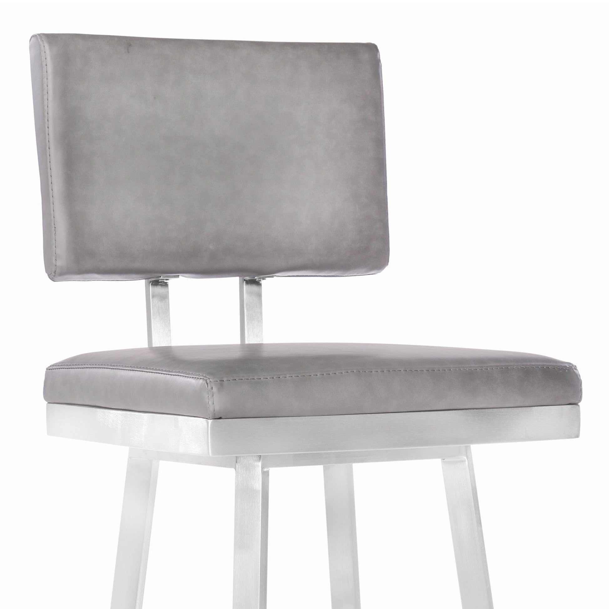 26" Vintage Gray on Stainless Faux Leather Rectangular Swivel Armless Barstool