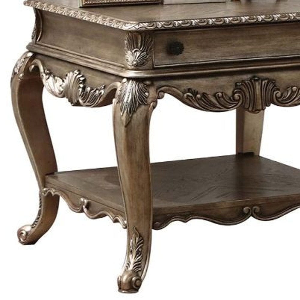 26" Vintage Oak Manufactured Wood And Polyresin Rectangular End Table With Drawer And Shelf