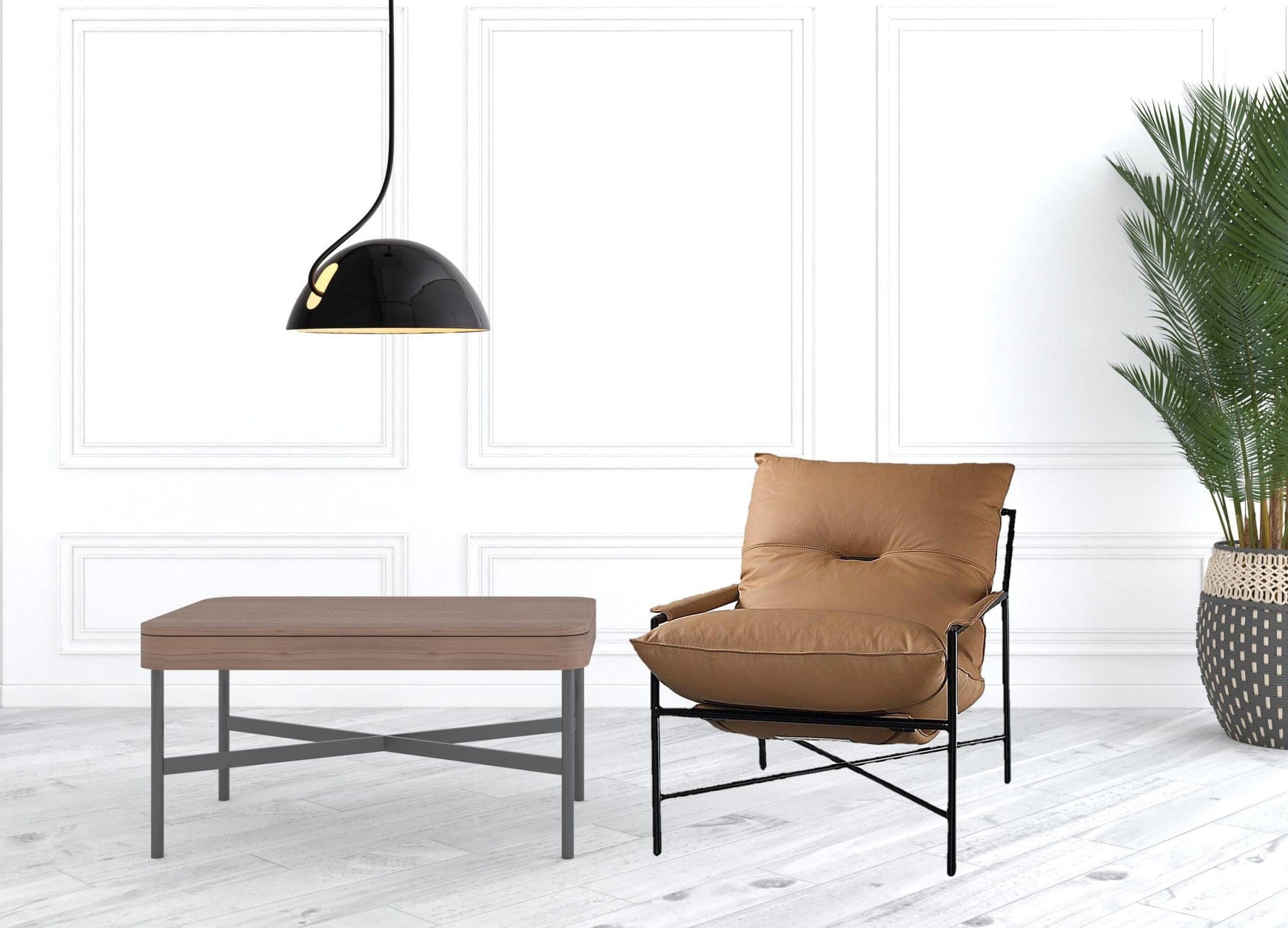 Fill your living room, bedroom, or office with fashionable seating options with this 28" camel top grain leather and black solid color arm chair. This gorgeous solid color camel arm chair is masterfully upholstered in durable top grain leather. The sturdy inner frame is built with high quality metal, includes armrests, and features a cushion back that is accented with soft and comfortable cushioning. The tufted cushions add fine designer detailing. 32" H x 28" W x 37" D
