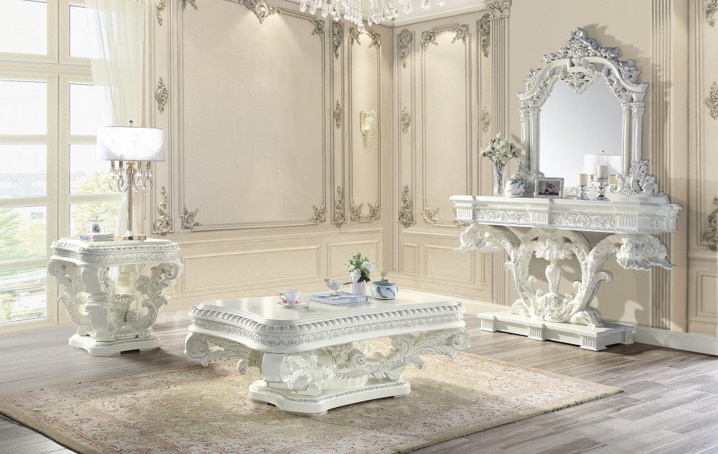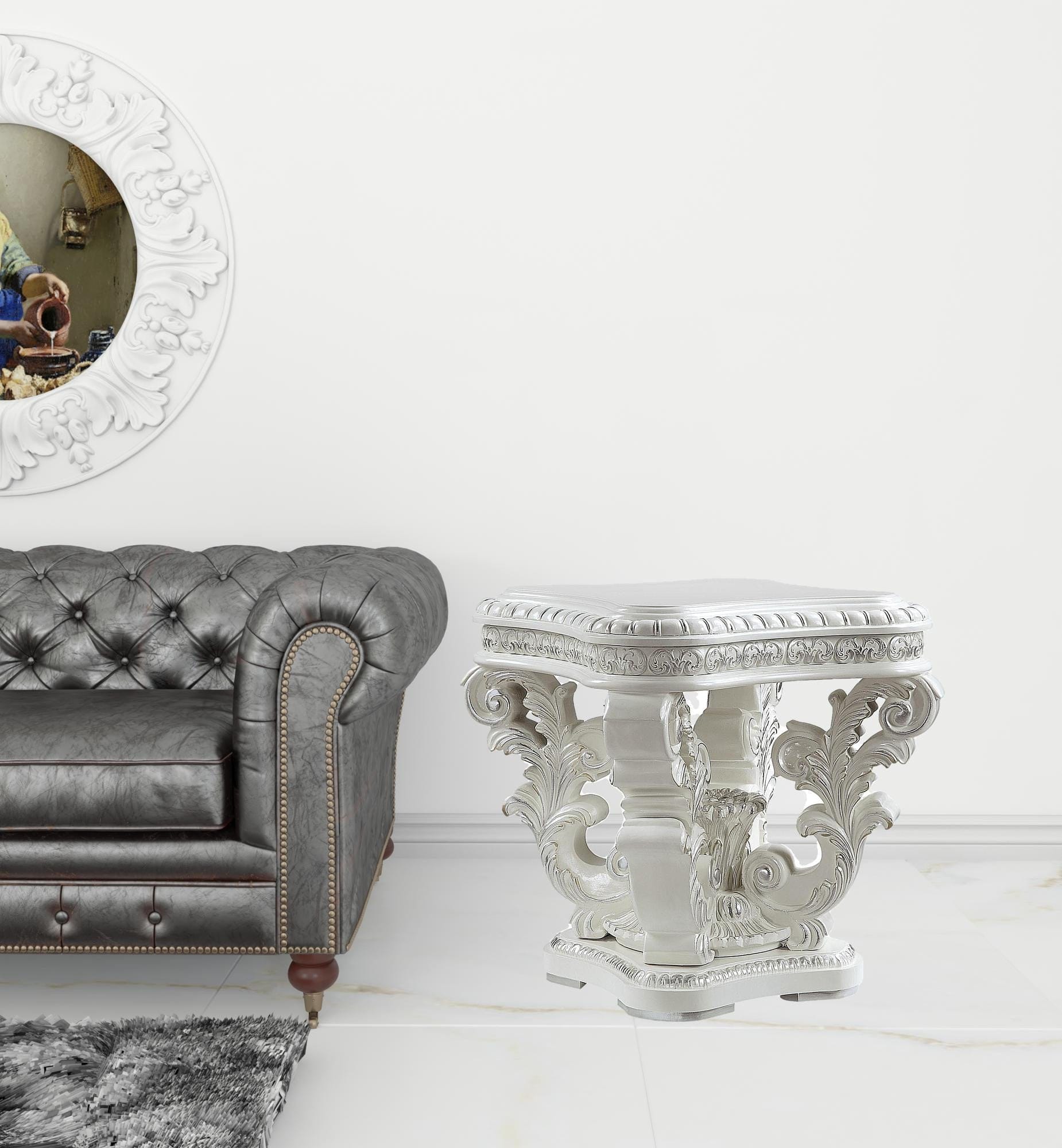 Optimize your space and add some charm to your room with the 29" antique white manufactured wood and resin square end table. The antique white coloration runs throughout this good looking resin and manufactured wood table. A great accent on either side of the sofa or bed, this adorable end or side table is just what you need. You can match it with other pieces to get the ideal look for your place. 29" H x 28" W x 28" D