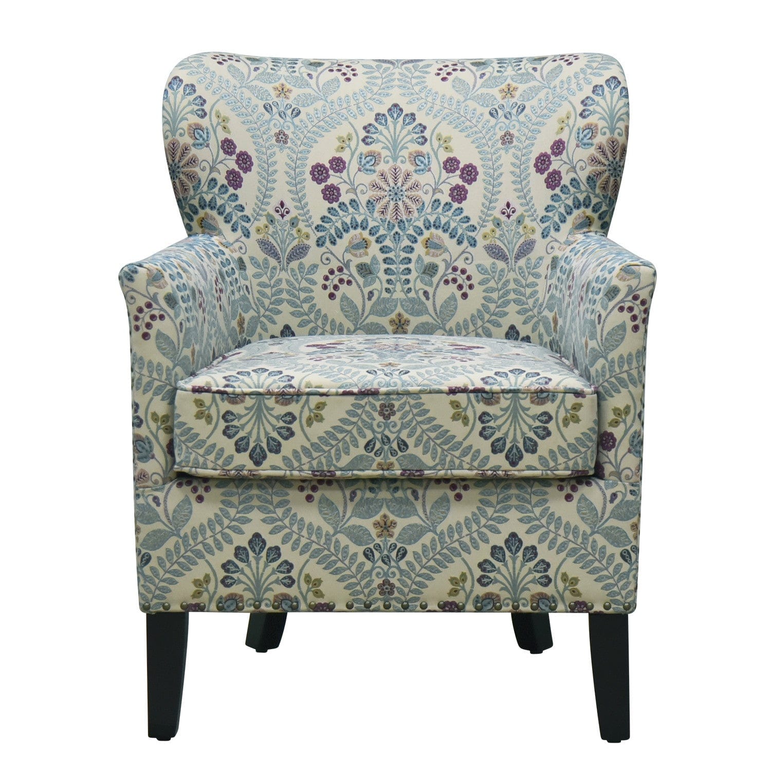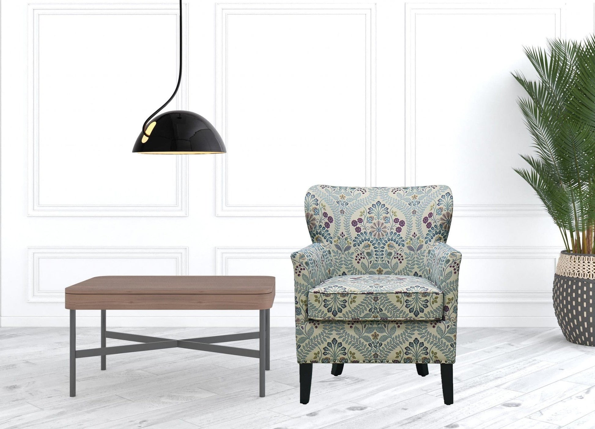 29" Blue Cream And Brown Polyester Blend Floral Arm Chair