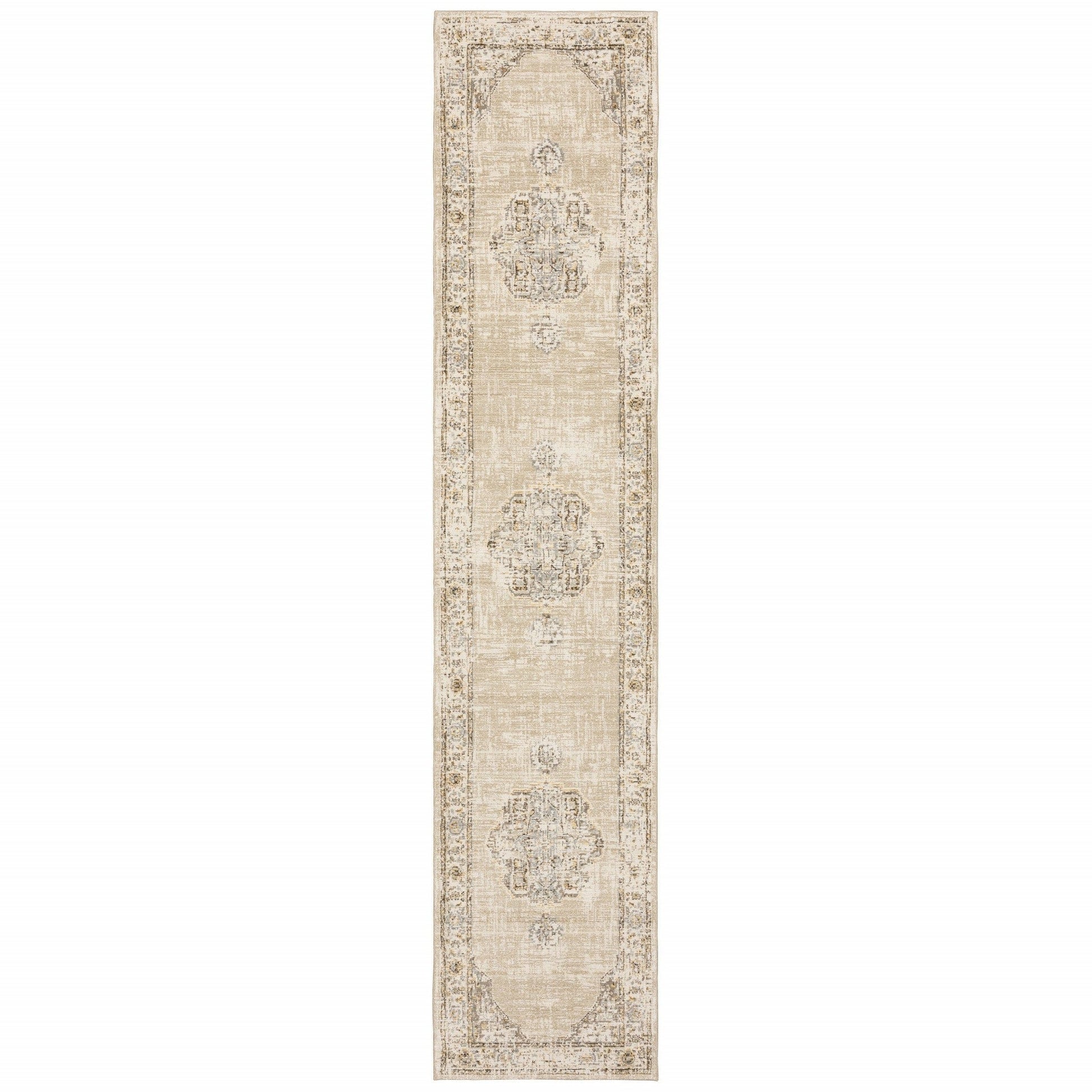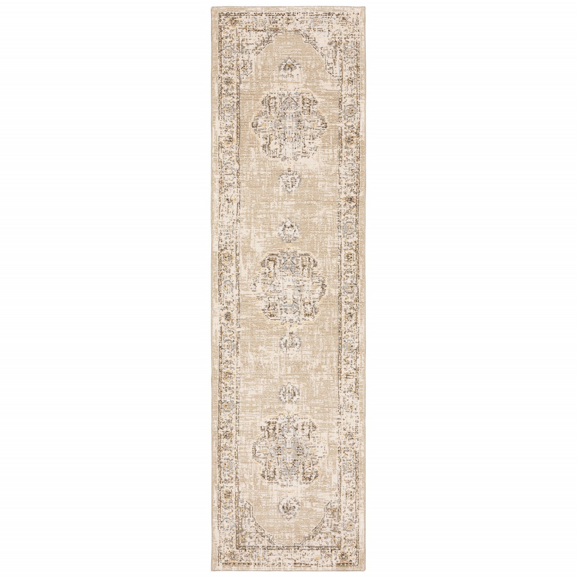 2'X3' Beige And Ivory Center Jewel Area Rug