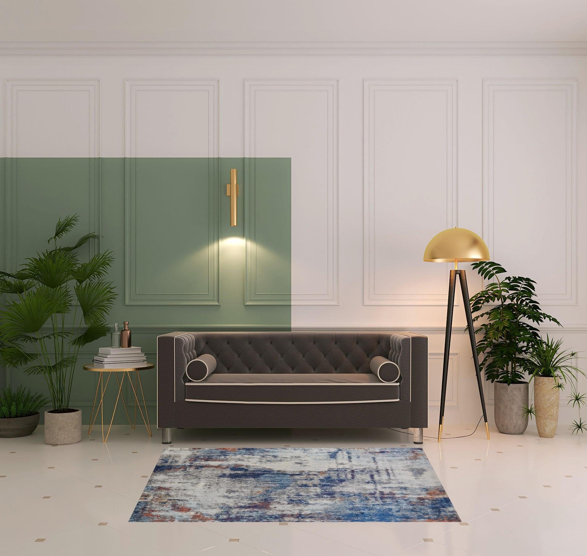 Set an inviting tone in your space with this 3' x 5' ivory and blue abstract power loom distressed stain resistant area rug. This rectangle shaped rug features a abstract design in ivory and blue to give it visual interest. A classic shape marries with good looking design for your space Made in Turkey, this rug offers high quality combined with good looking designer sensibilities. Ideal for spaces with kids and pets, this rug is stain resistant to help repel stains and spilled liquids. Area Rugs help to give warmth and sense of home to your space. 0.39" H x 36" W x 60" D