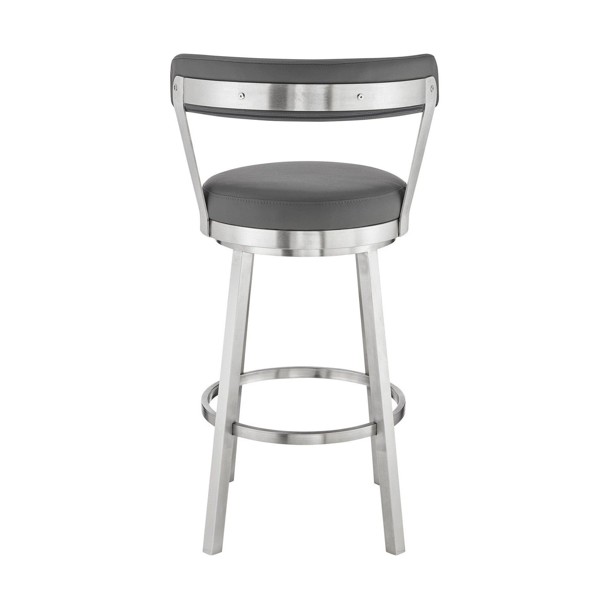 30" Chic Grey Faux Leather with Stainless Steel Finish Swivel Bar Stool