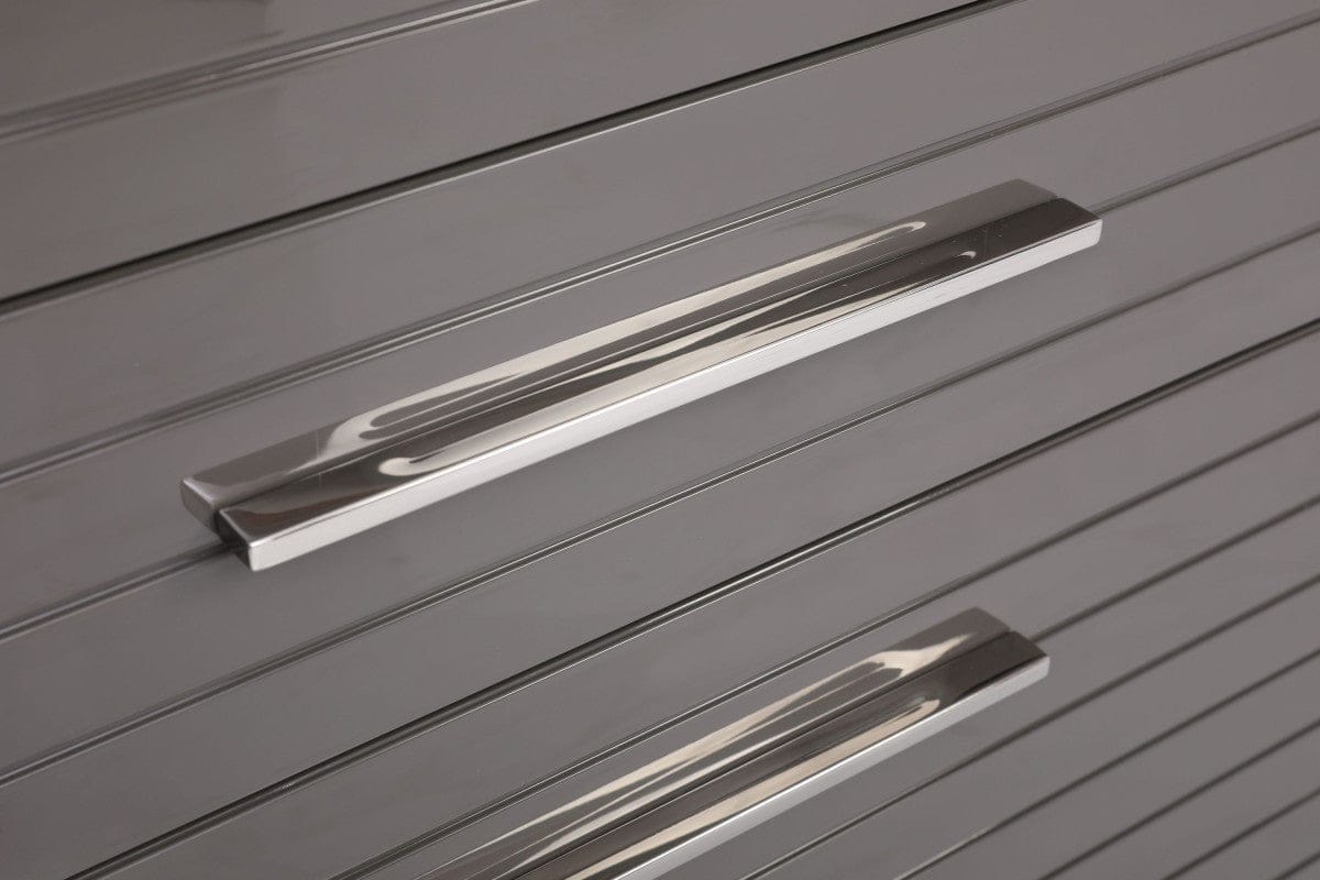 Enhance your room into a visually delightful and highly functional space with this 30" grey manufactured wood + solid wood stainless steel six drawer standard chest. The space saving design of this standard chest makes it a great choice for space challenged spaces or small walls within your room. Loaded with capacity, this piece is equipped with six easy open drawers for practical and good looking clothing storage. Its a high quality piece, made from high grade manufactured wood + solid wood, stainless steel. 51.5" H x 29.5" W x 19" D