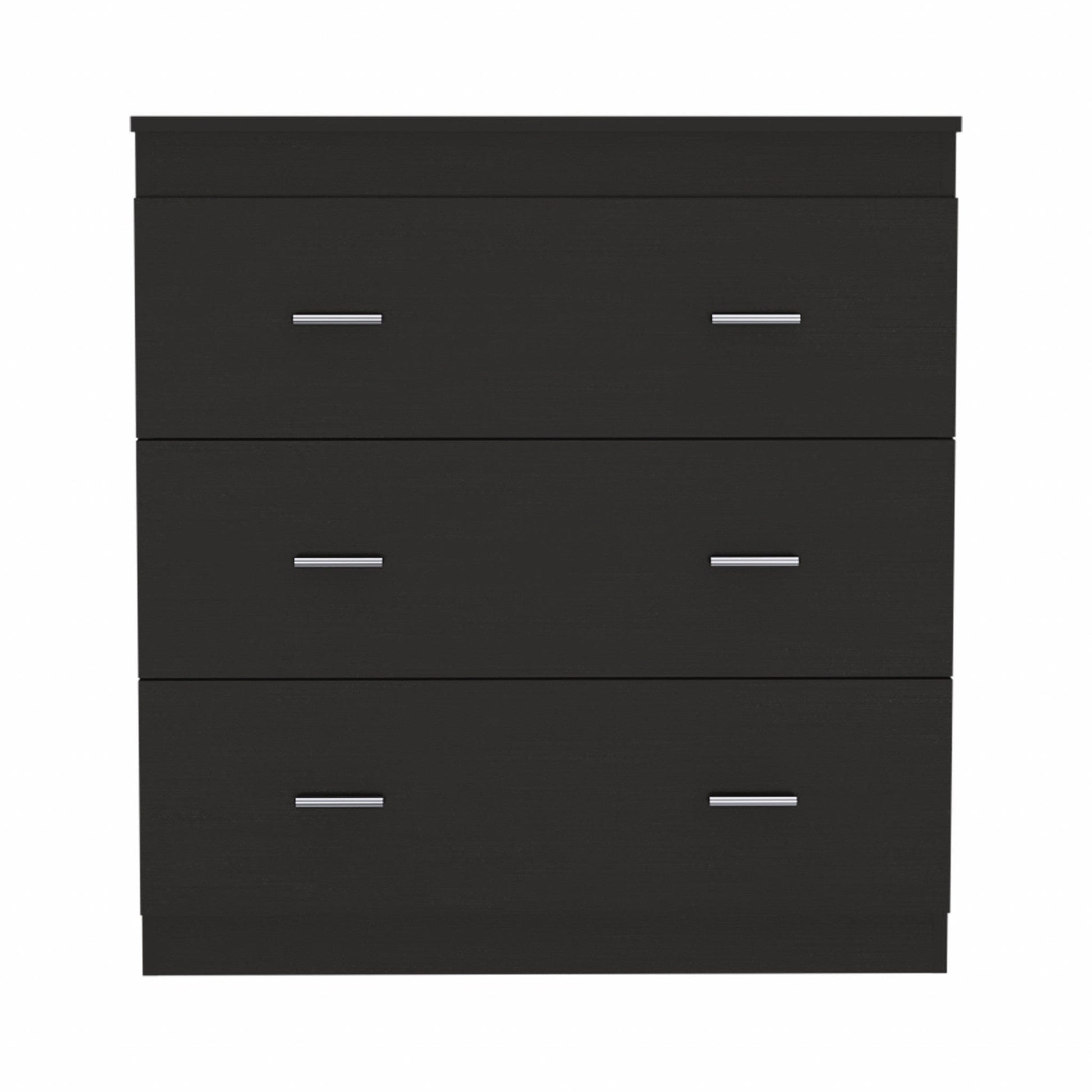 Enhance your room into a visually delightful and highly functional space with this 32" black wengue manufactured wood three drawer standard dresser. Designed for you to stand in front of and get ready, this horizontal standard dresser has a convenient and wide top area for your getting ready needs and supplies. Equipped with three easy open drawers for practical and good looking clothing storage. Its a high quality piece, made from high grade manufactured wood. 33.5" H x 31.5" W x 16.38" D