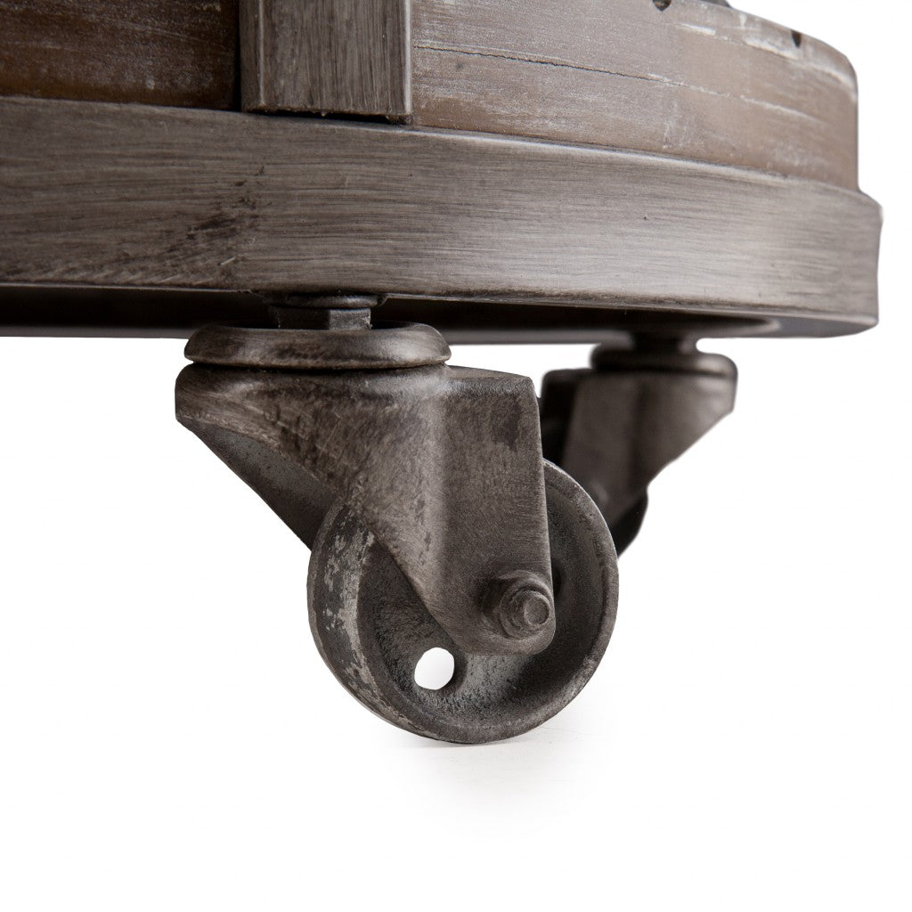 32" Brown Rustic and Distressed Round Two Tier Rolling Coffee Table