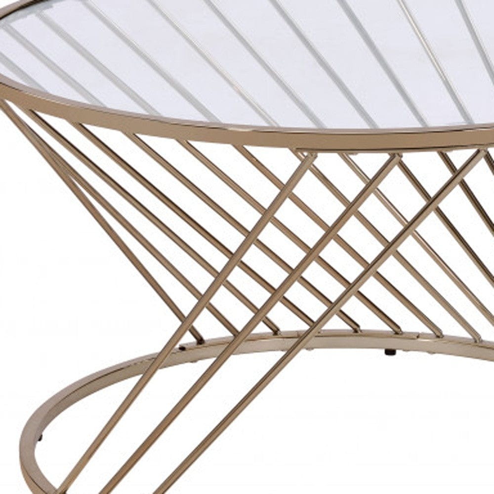 32" Champagne And Clear Glass And Metal Round Coffee Table