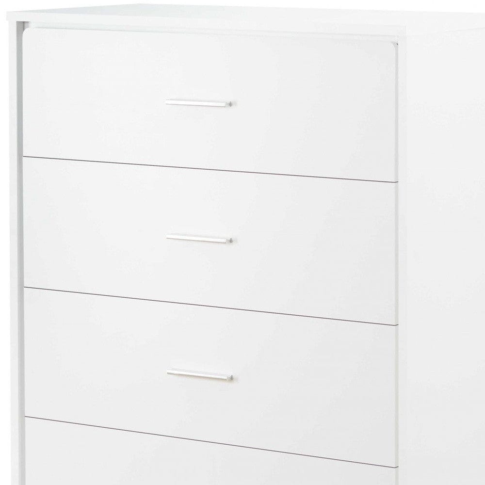 Get on board with this sleek chest of drawers. This contemporary chest in walnut finish has a glossy design and good accents. The chest is spacious and has five drawers with metal feet that add an industrial touch to the design. The overall outline contributes to the pretty and sophisticated appearance of this collection. It has a wooden case frame, glide side metal, safety stop and five drawers. The weight capacity is 40lbs, drawer size is 28 inches by 13 inches by 5 inches while the feet have 6 inches each. The chest looks great and adds beauty to your bedroom area.