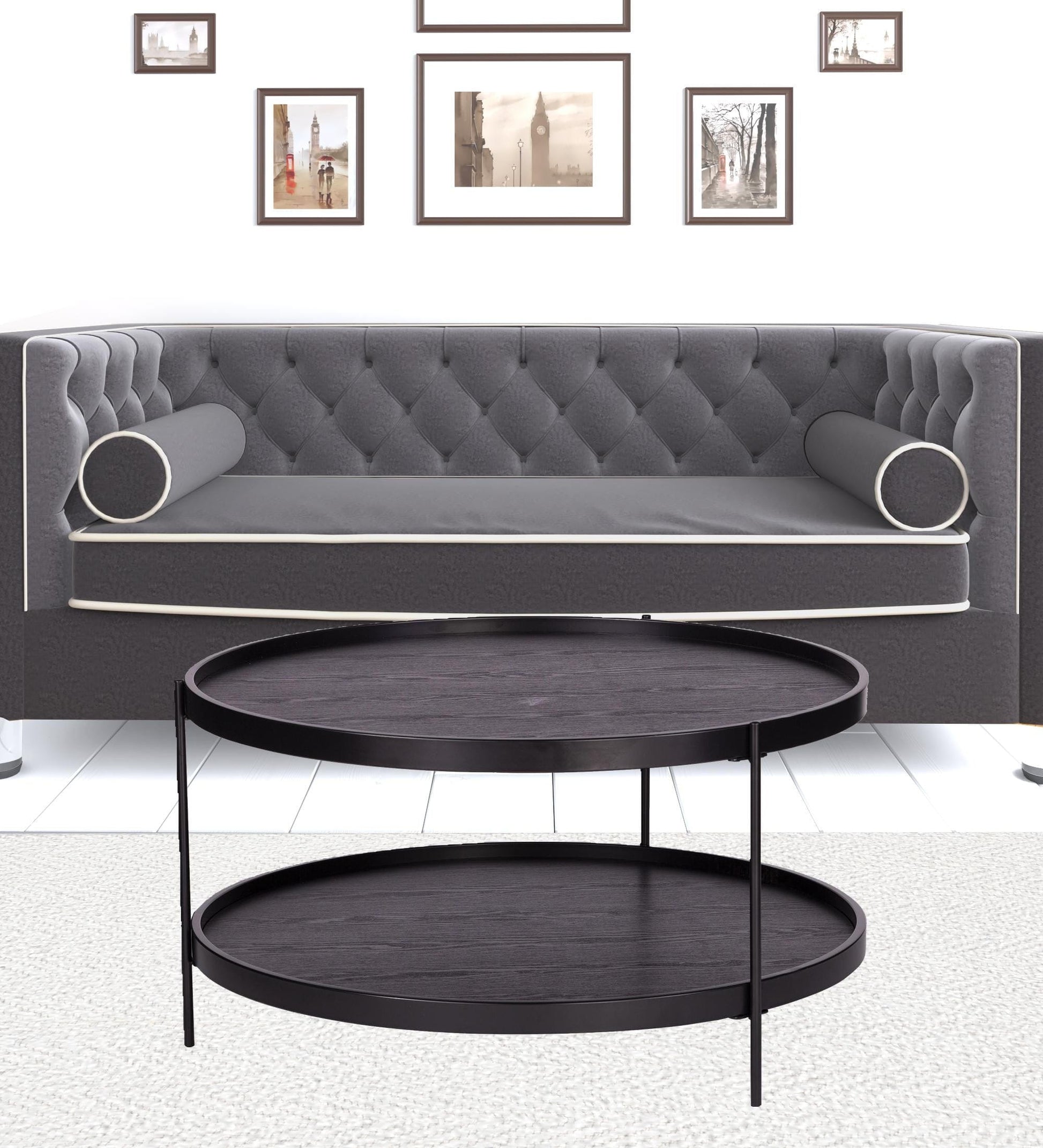 33" Black Manufactured Wood And Metal Round Coffee Table
