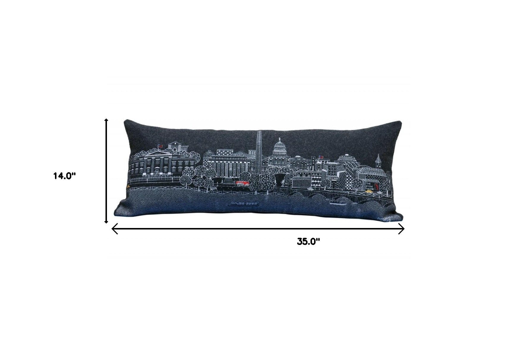 35" Black Washington DC Nighttime Skyline Lumbar Decorative Pillow