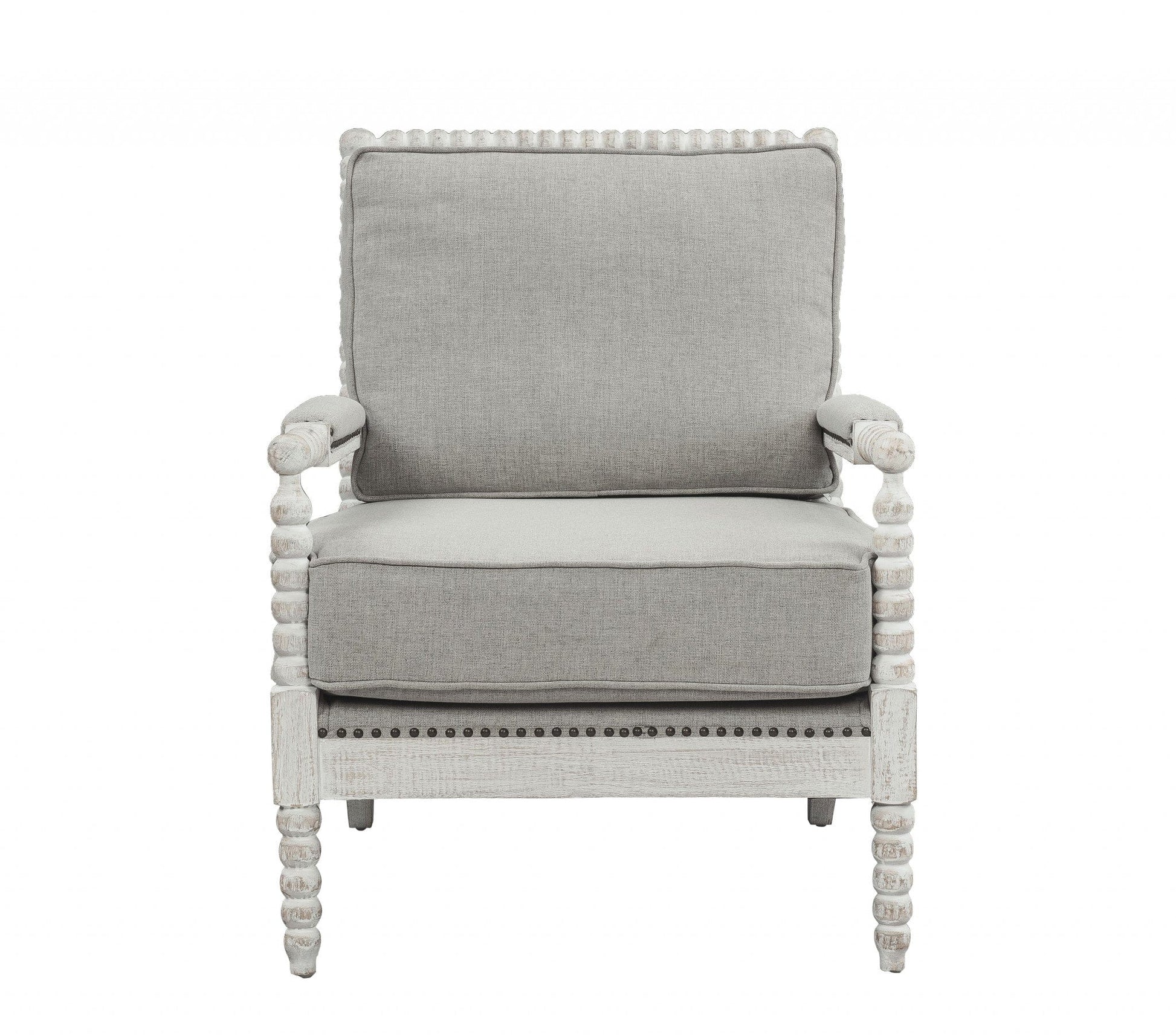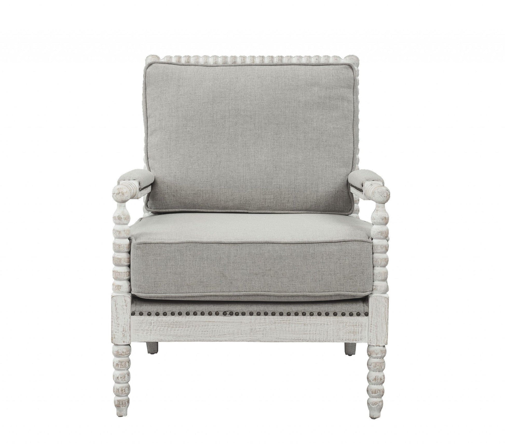 Give your living room, bedroom, or office a facelift with this beautifully crafted 35" gray linen and light oak solid color club chair. Built to last this club chair is finished in solid gray linen to give your room a great update. The sturdy inner frame is built with high quality solid + manufactured wood, includes armrests, and features a loose back that is accented with soft and comfortable cushioning. Nailhead trim gives this chair a refined look that adds additional texture and visual interest. 39" H x 35" W x 28" D