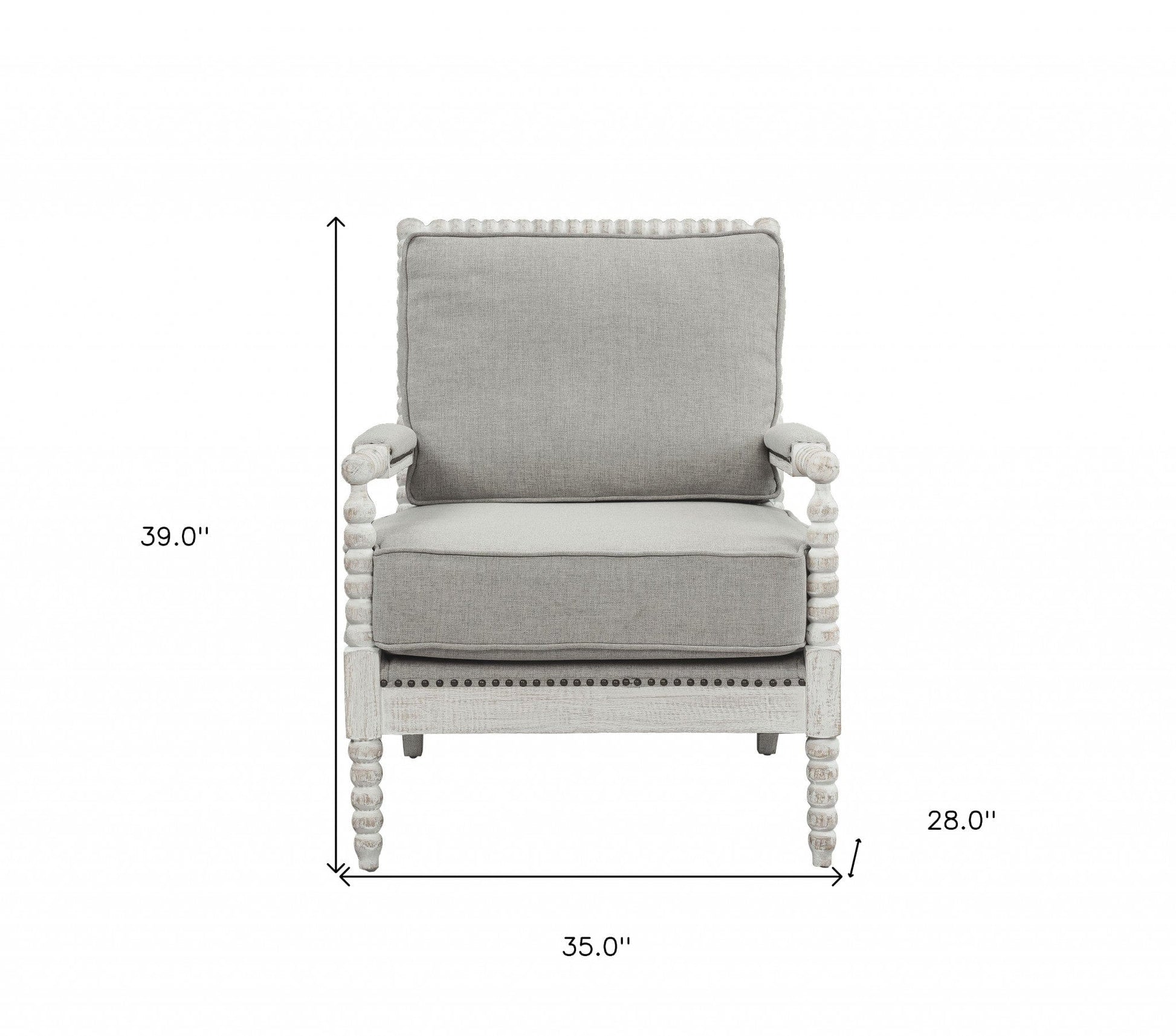 35" Gray Linen And Light Oak Solid Color Club Chair