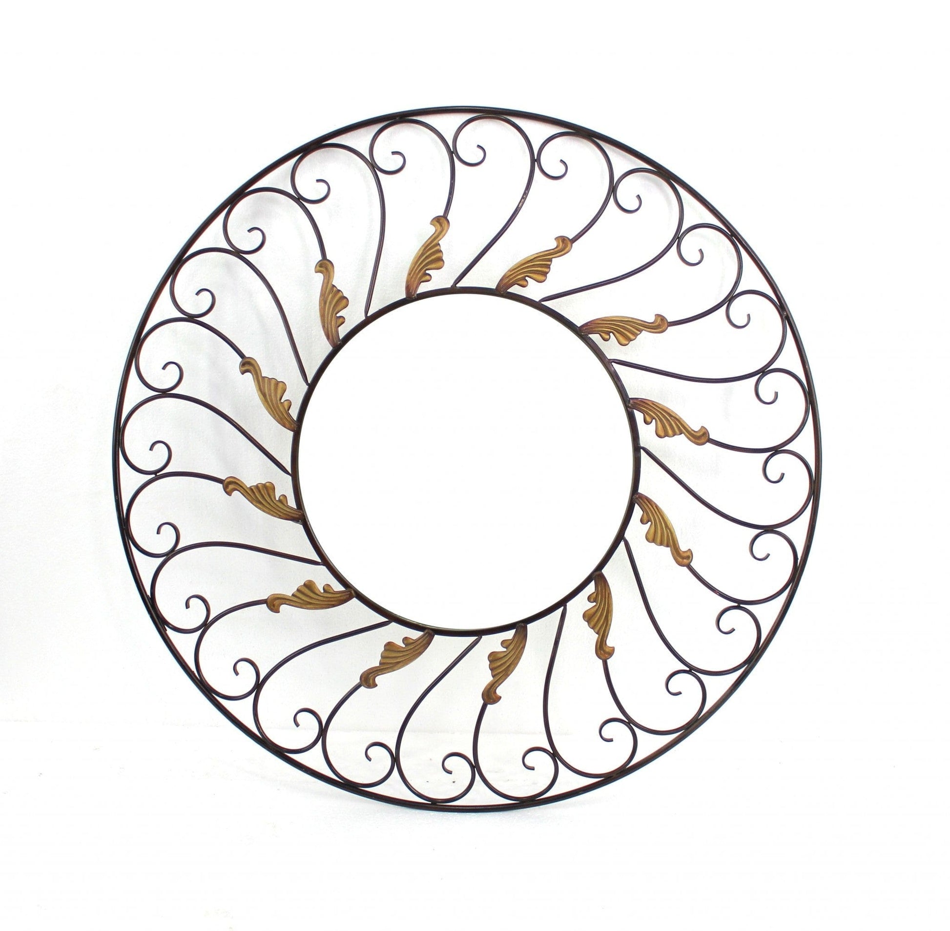Built with alluring style and made to last, our vintage wall mirror will pass for a perfect addition to your bathroom, hallway or dressing room. With an ornately carved scroll design, our framed wall mirror with an espresso finish will not only excite you and your visitors but will also complement the existing fixtures and furniture in a retro or traditional decorated home. As part of our unique wall art, this bronze vintage decorative metal mirror wall art will definitely make dressing, makeup and grooming an exciting routine for you for many years to come. - Vintage collection - Metal frame - Ornately carved scroll design - Espresso finish