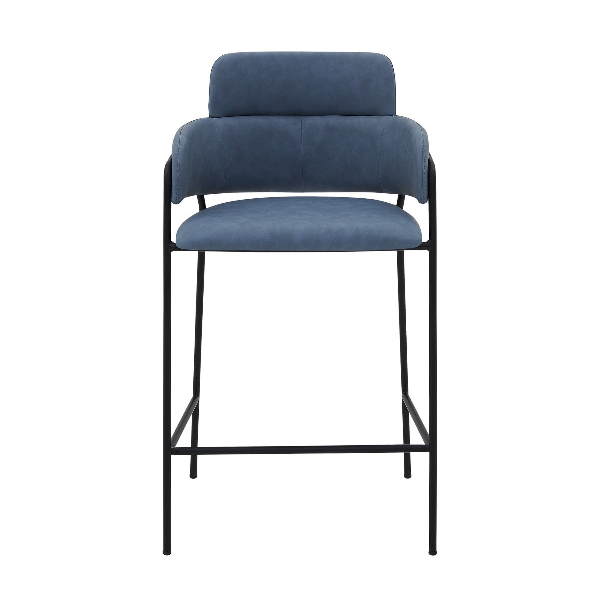 37" Light Blue Faux Leather And Iron Counter Height Bar Chair
