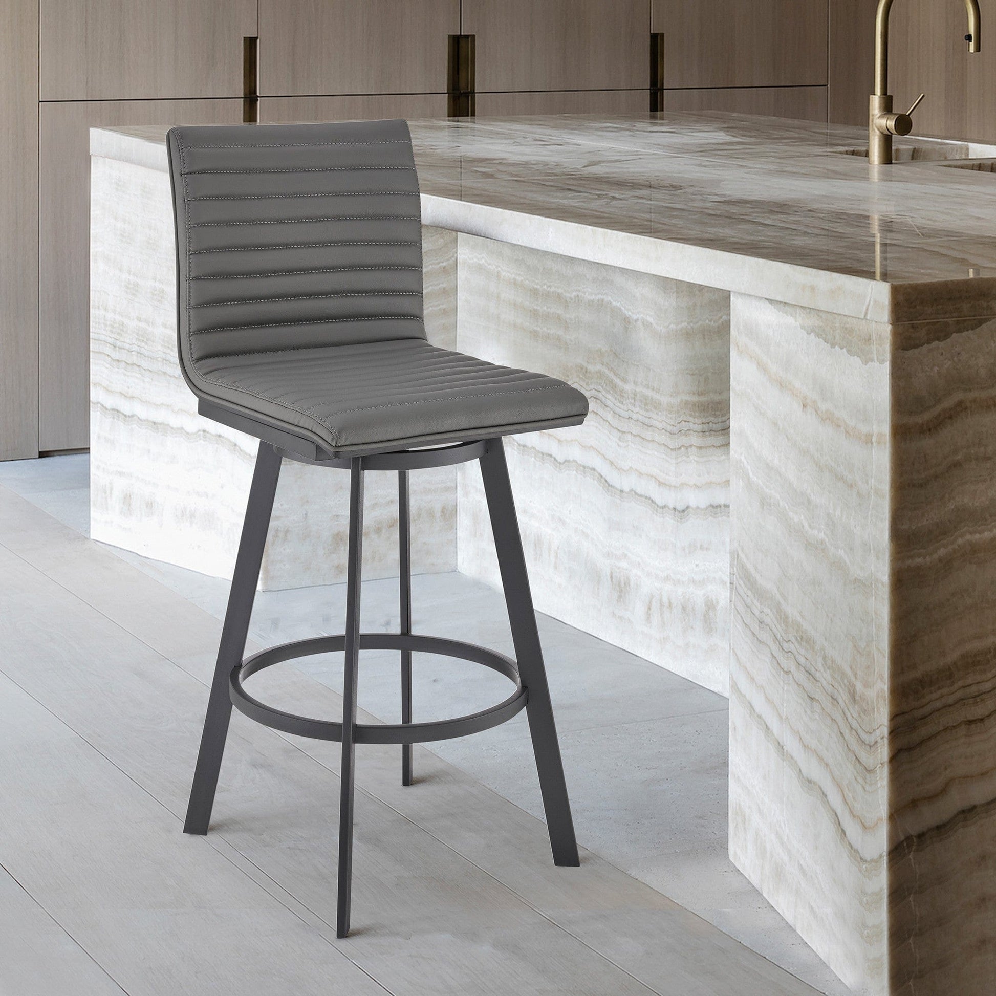 39" Gray Faux Leather And Iron Swivel Counter Height Bar Chair