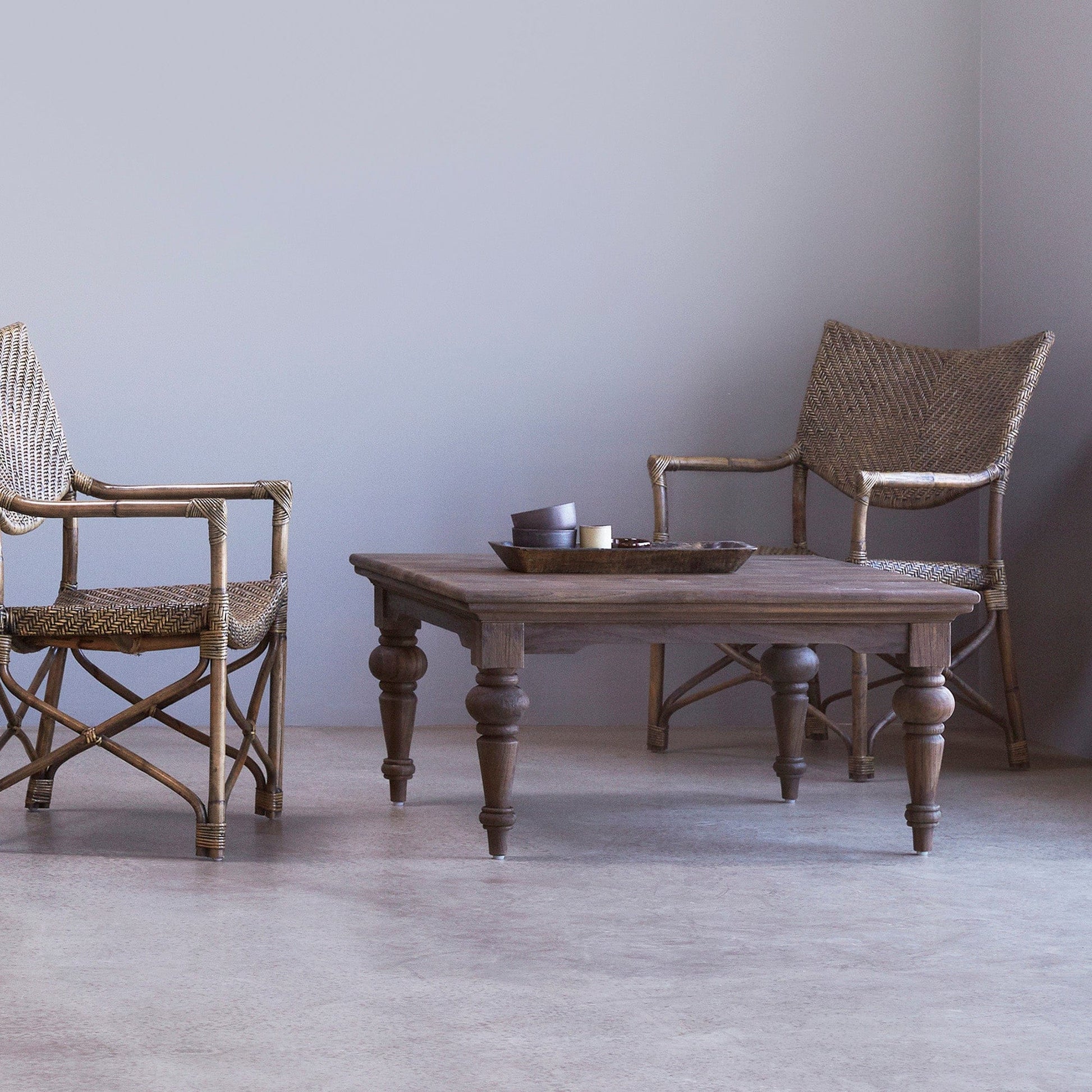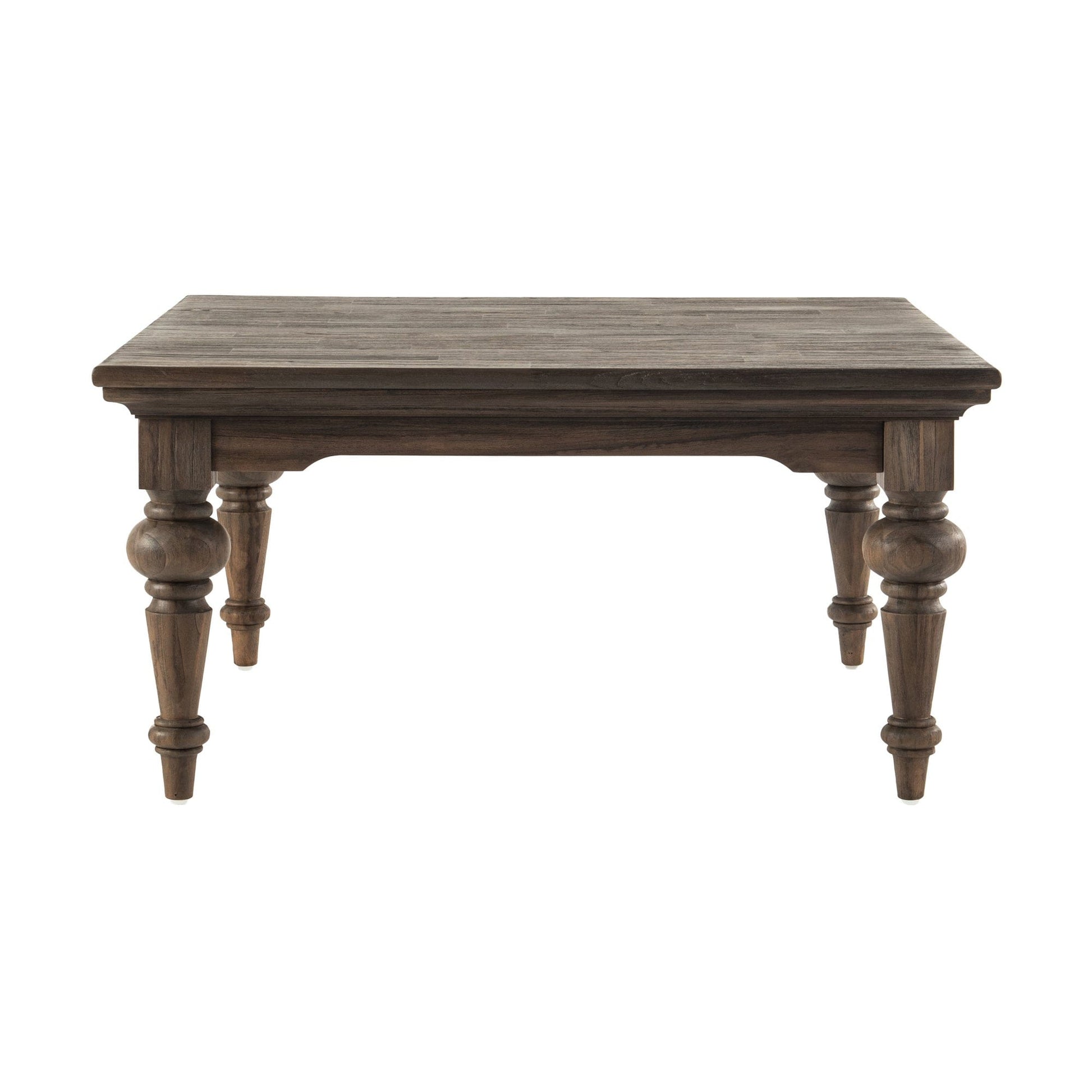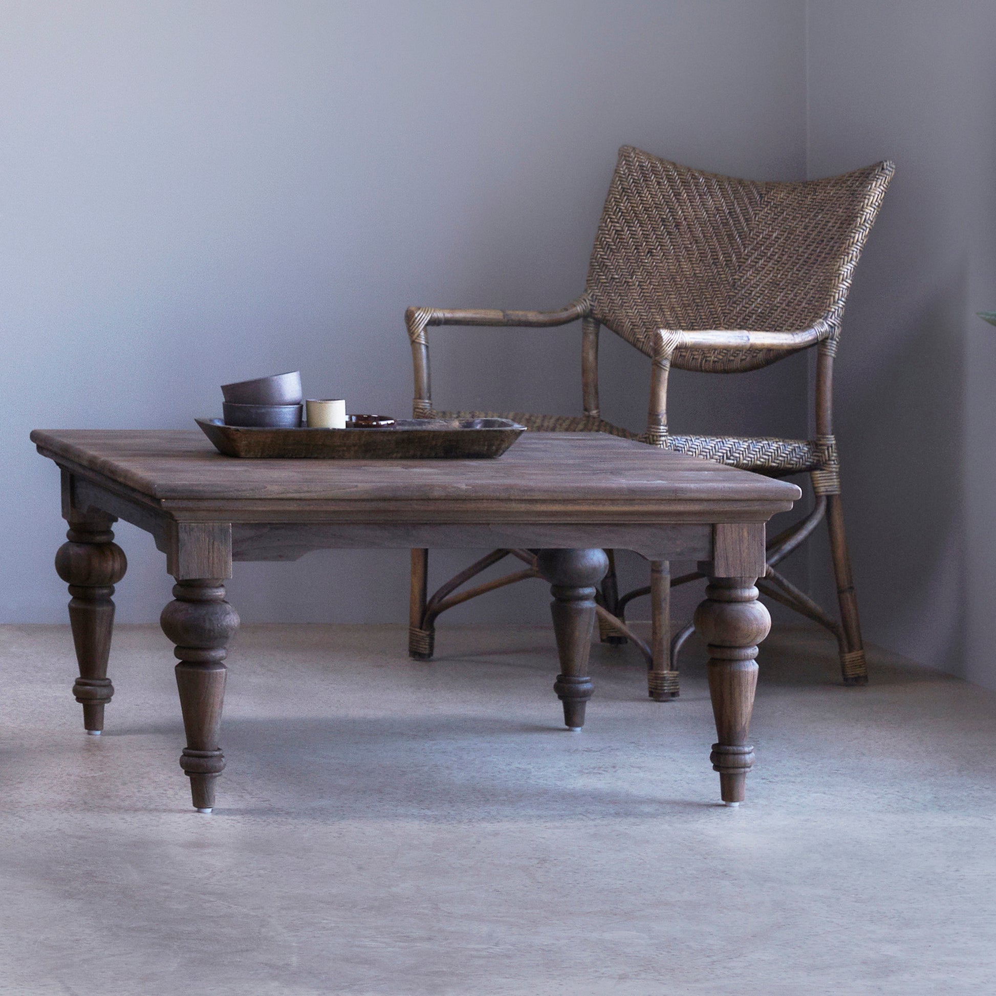 Give your living room, family room, or office the perfect anchor piece with this 39" gray solid wood square coffee table. This table is made from solid teak in a natural brown/gray color throughout the base and top. This square table top features pairs with beautiful traditional style turned legs a unique shape to give your room a visually pleasing accent. This table features an updated monotone color scheme with gray as the main color on both the top and the base. Perfectly designed in a modern farmhouse-inspired style this piece can blend with various design aesthetics ranging from coastal to modern. This coffee table evokes a relaxing traditional feel in your space. 19.69" H x 39.37" W x 39.37" D