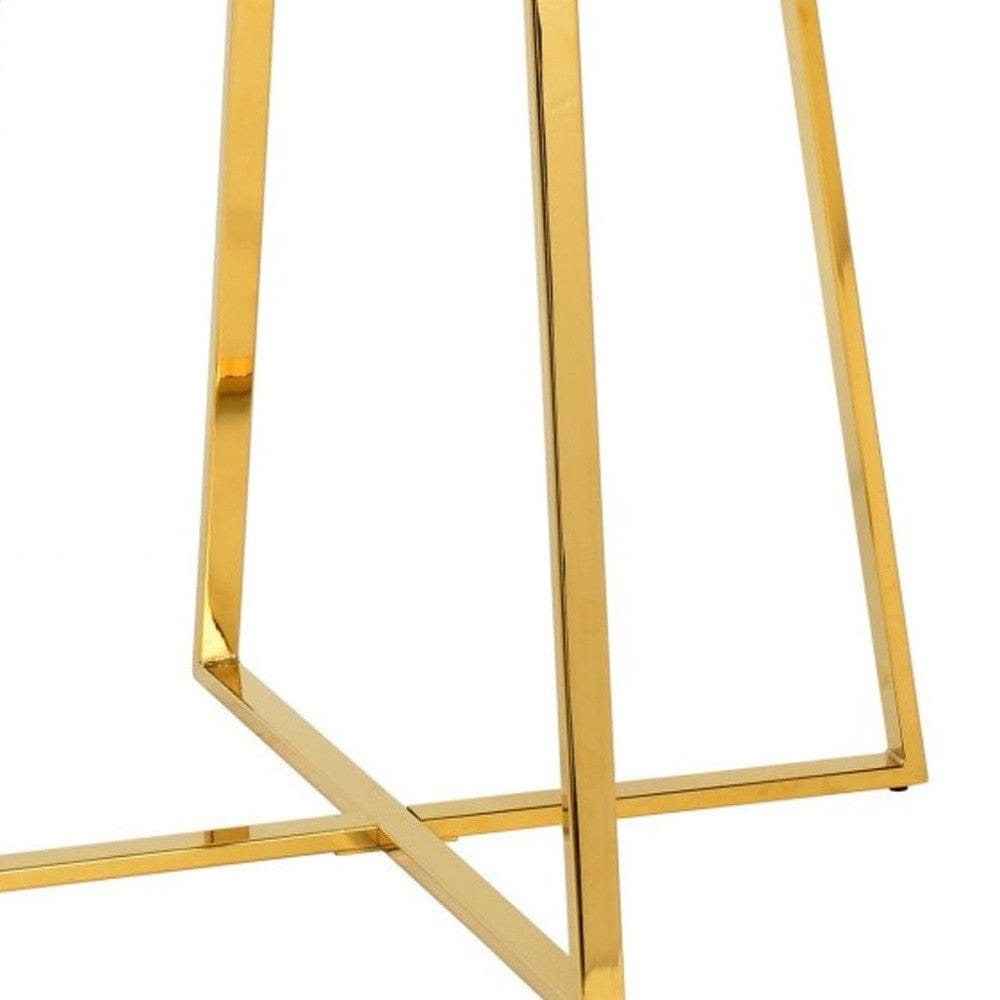 Add handsome, fashionable design to your dining space with this 39" white faux marble and gold round dining table. Quality construction from the gold iron base combines with white faux marble of the top to give this table a fresh and updated two-tone look. A beautiful crossed bar geometric base adds some dimension and elegance to your dining. This dining table seats 4 people comfortably. Complete your kitchen or dining room with this well made and stylish table. The dining table plays a central part in your home. This design is a great way for you to enjoy dining and entertaining in style. 30" H x 39" W x 39" D