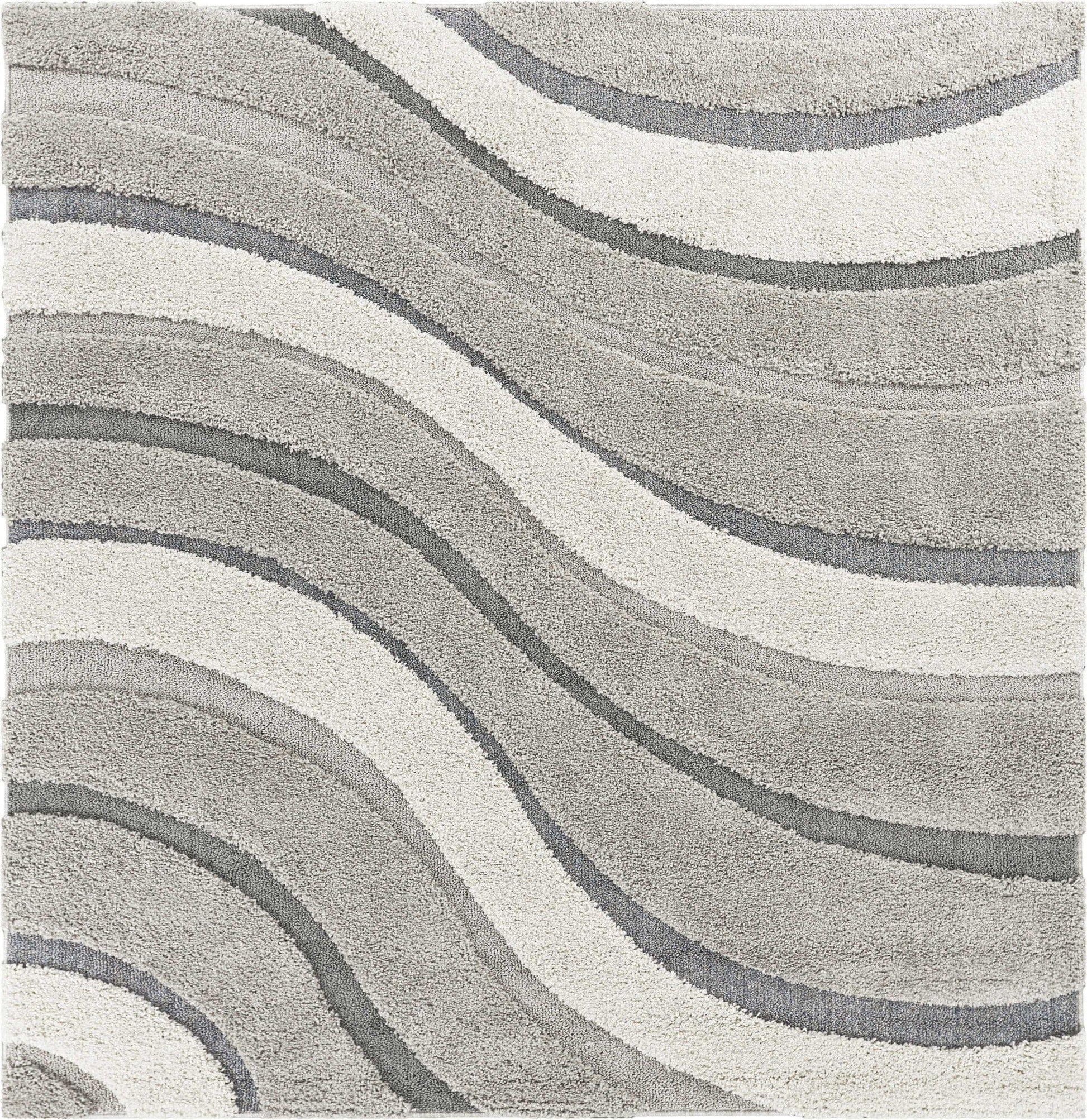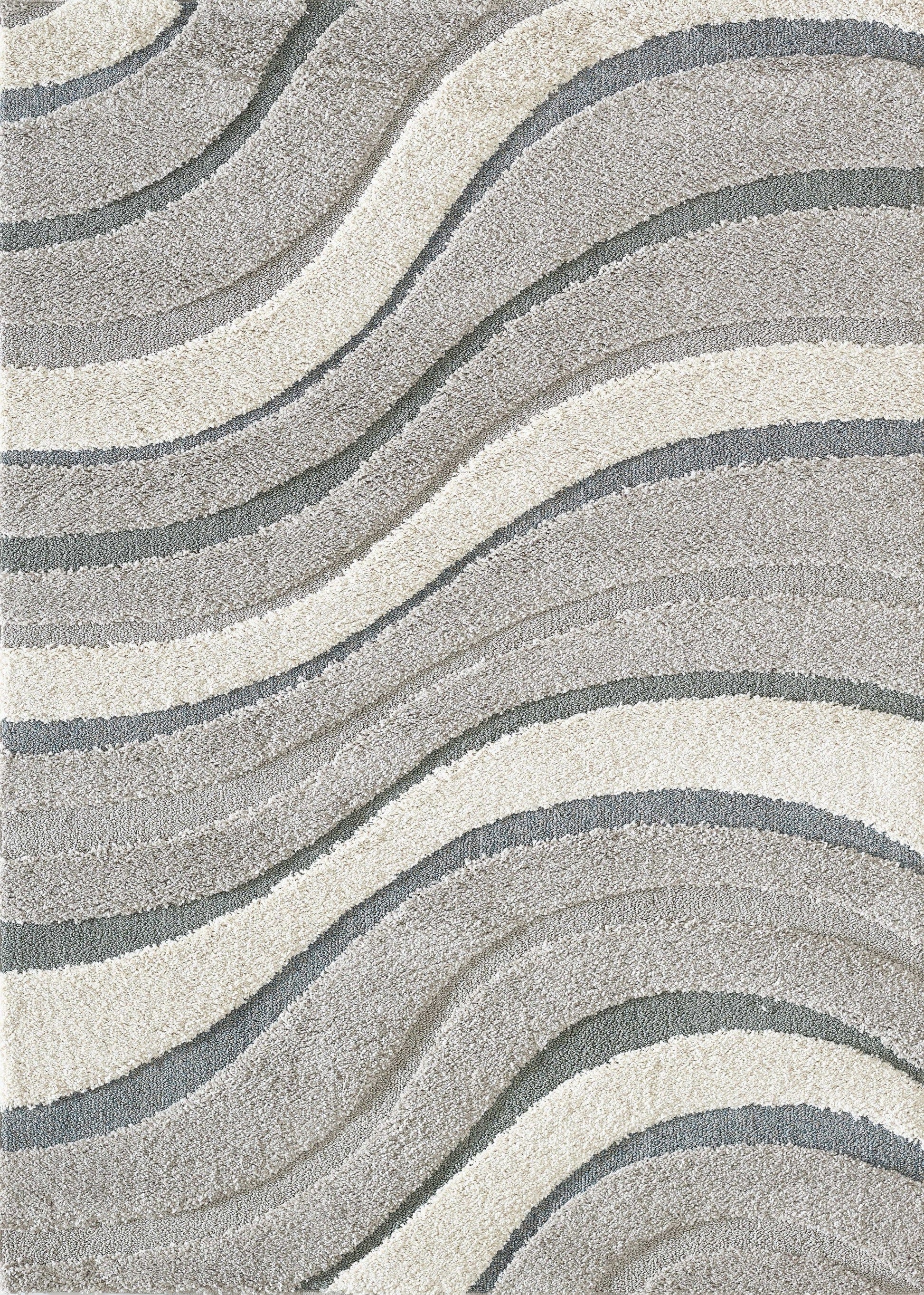 Densely woven in neutral col or s, this shag collection will add comf or t and style to any living space. With a plush hi-lo pile underfoot, these patterned shags are a must-need f or your home. Monterrey is machine-woven of polypropylene yarns from Turkey with a 1 thick pile. Monterrey 6911 Grey Waves 39" x 63". Machine-woven of Polypropylene with No Backing. Made in Turkey. Vacuum regularly & spot clean stains. Professional cleaning recommended periodically.
