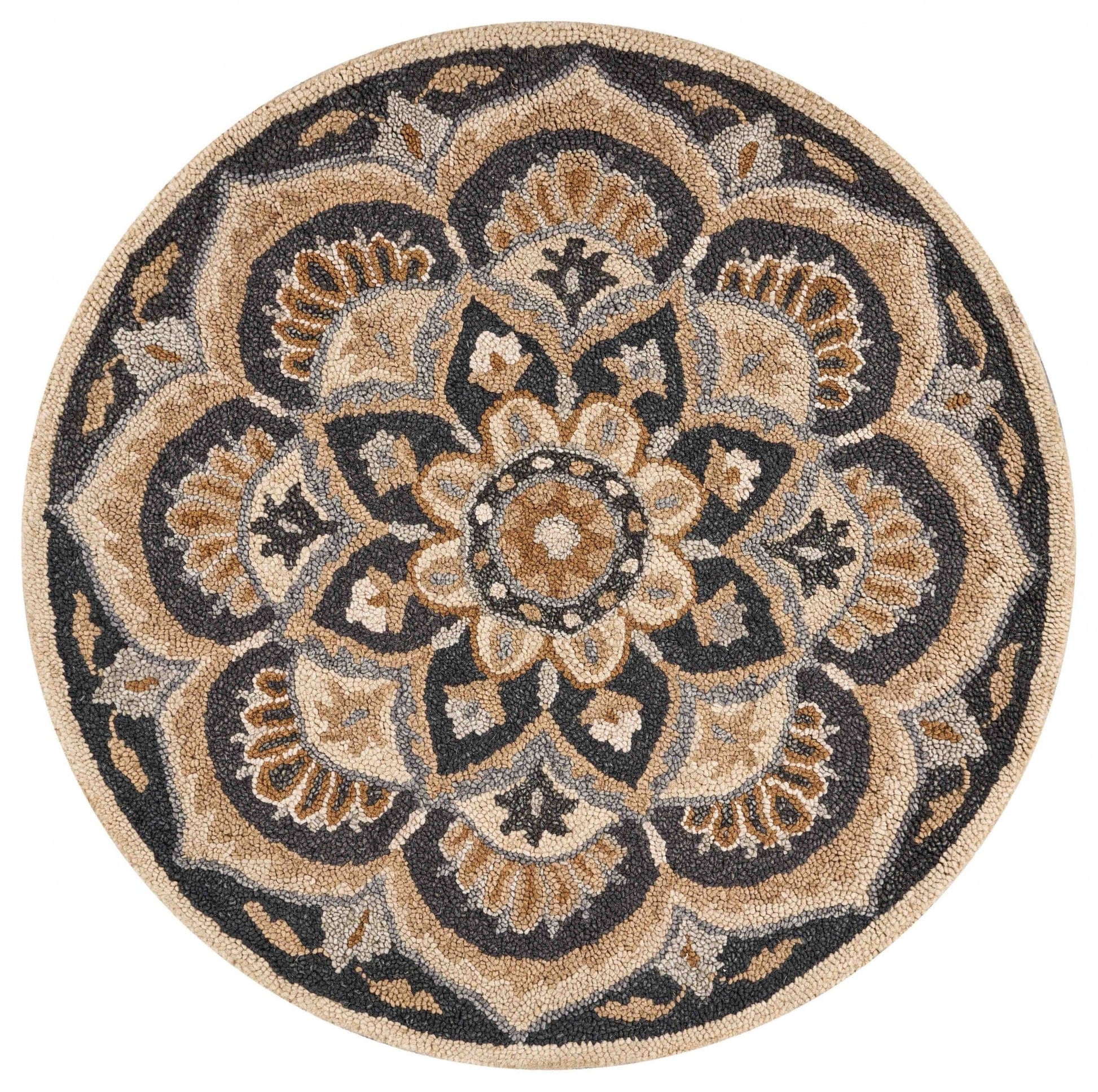 An alluring centerpiece on its own, this Round Black Flower Blossom Area Rug represents the true meaning of art coming to life. The tasteful use of bold black and soft beige to accentuate a mandala with intriguing flower petals and intricate details makes this rug a stunning piece of art to flaunt amidst a boho-chic or traditional setting. Hand-tufted with 100% virgin wool that is inherently hard-wearing and moisture-wicking to last for years while regulating the temperature in both cold and warm weather. The low pile construction offers a luxurious surface texture for a cozy underfoot, making it an excellent accent for high-traffic areas. The classy combination of this area rug will not only enhance the aesthetics of your place but earn you loads of compliments. 48”