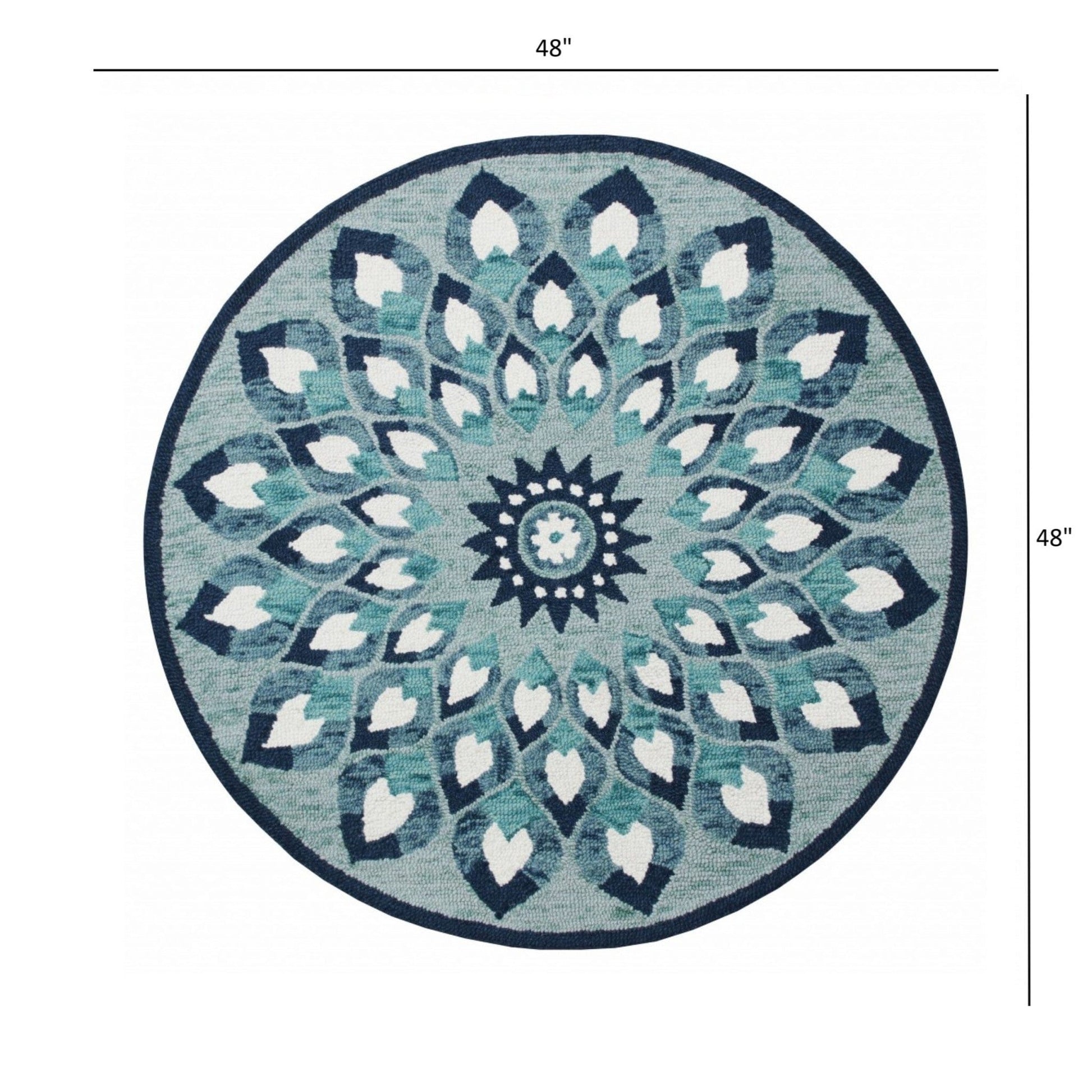 Flaunting an eye-catching design in a soothing color palette, this Round Blue and White Floral Feathers Area Rug is a piece of art on its own. The beautiful floral feathers in shades of blues transitioning from deep hues to the lighter ones look harmonizing while the hints of white add to visual contrast. This rug is Construction: 100% wool for added softness and durability, allowing it to last a long time and provide a cozy and inviting underfoot. The medium pile texture adds texture to the surface, making it an excellent accent for low to moderate traffic areas indoors. Induce a calm and relaxing ambiance into your place with this stunning area rug that is meant to spruce up any modern or traditional living space. 48”