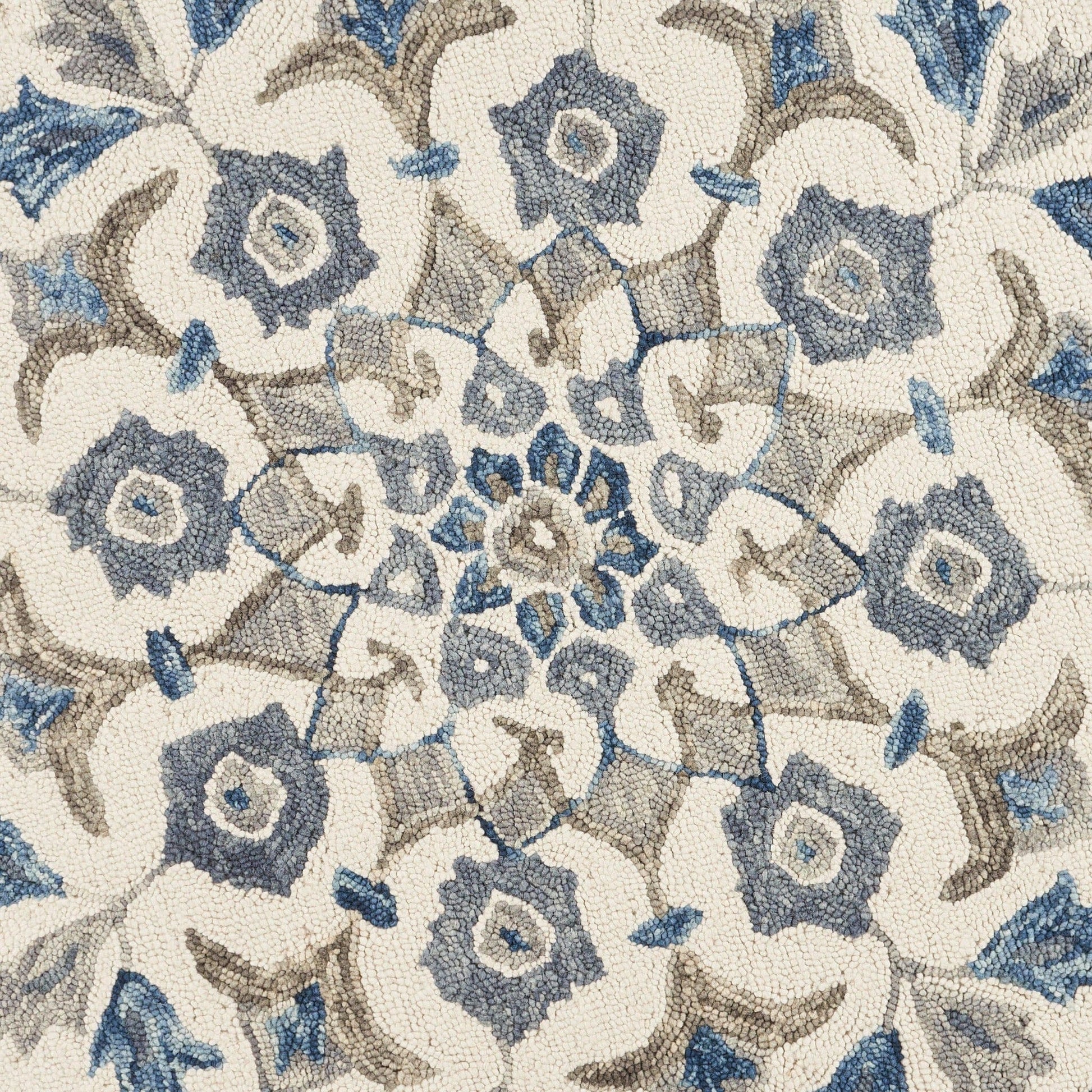 Let an essence of calm and comfort flow through your living space with this Round Blue Floral Oasis Area Rug. The freshness of the blue iris floral artwork on an ivory base evokes a sense of tranquility in the atmosphere. With quality and durability in mind, this rug is hand-tufted with 100% virgin wool that is hard-wearing to last long in high-traffic areas while providing insulation to regulate temperature and keep you warm or cool. An ideal piece to flaunt in your dining area, living space, or office, this rug is constructed with a soft and low pile that adds to the surface interest for a luxurious underfoot. The subtle and sophisticated hues of this area rug will tie together the aesthetics of your contemporary interior with style and elegance. 48”