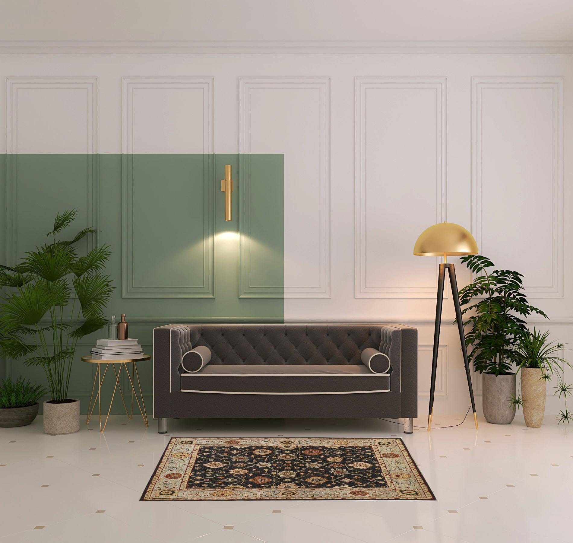 Add some artistry to your room with this 4' x 6' black gold and gray wool floral hand knotted stain resistant area rug with fringe. This rectangle shaped rug features a floral design in black gold and gray to give it visual interest. A classic shape marries with good looking design for your space Ideal for spaces with kids and pets, this rug is stain resistant to help repel stains and spilled liquids. Tassel ends bring a timeless and fashionable look to your interior. Crafted by skilled artisans, this hand knotted rug is genuine and unique. No two will be exactly alike. Area Rugs help to give warmth and sense of home to your space. 0.28" H x 42" W x 66" D