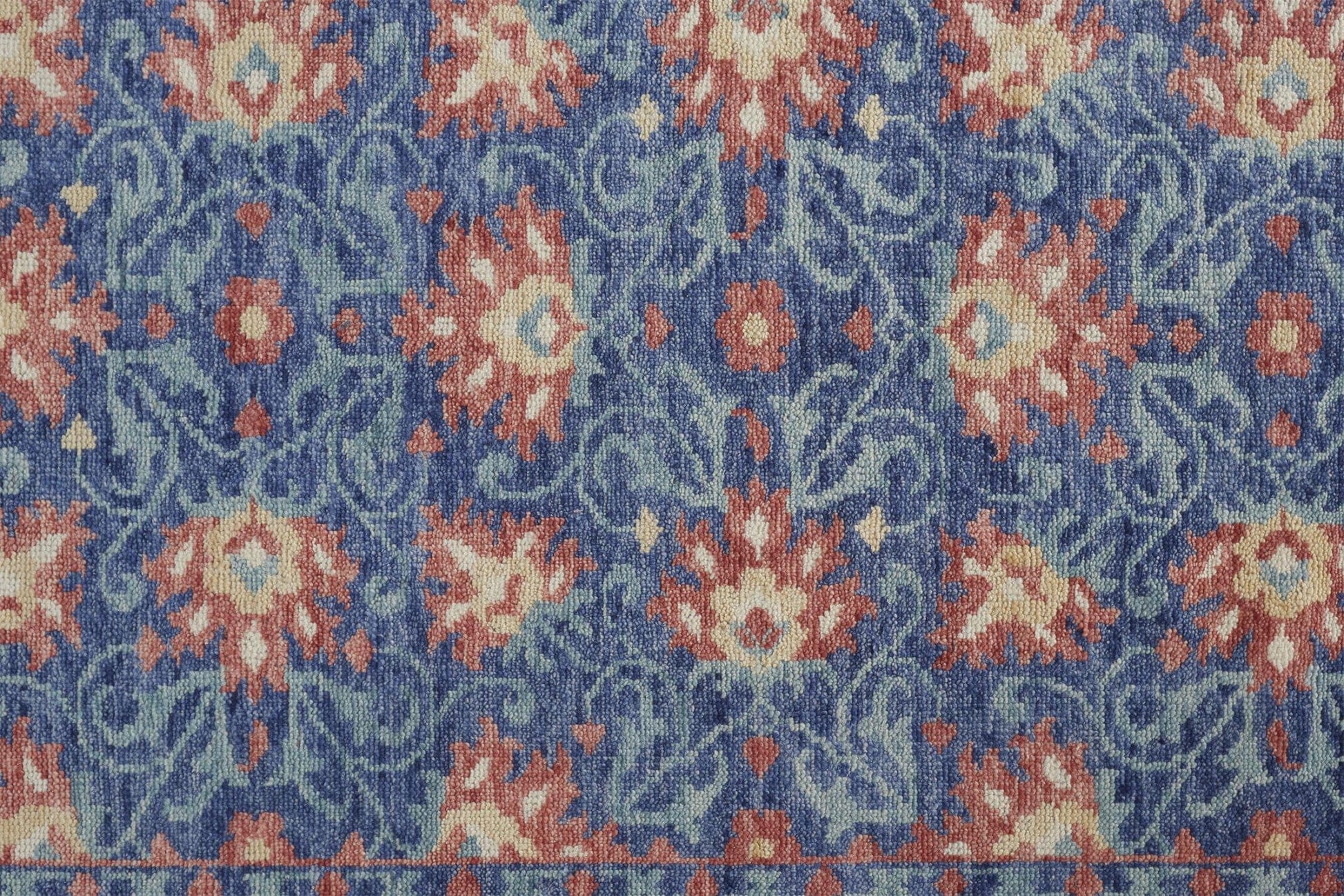 4' X 6' Blue And Red Wool Floral Hand Knotted Stain Resistant Area Rug