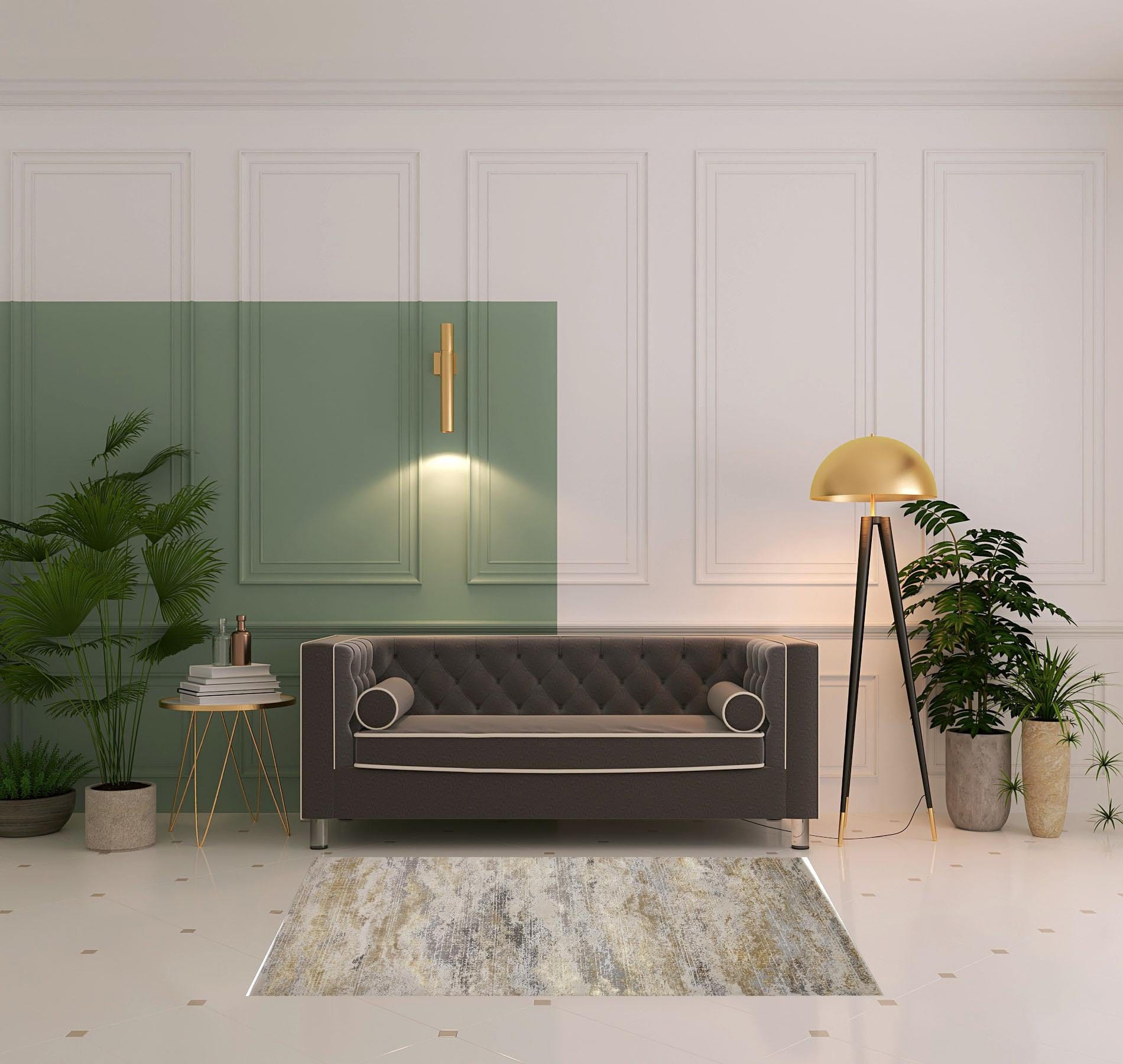 Set an inviting tone in your space with this 4' x 6' gold gray and ivory abstract area rug. This rectangle shaped rug features a abstract design in gold gray and ivory to give it visual interest. A classic shape marries with good looking design for your space Made in Turkey, this rug offers high quality combined with good looking designer sensibilities. Place this area rug against a hardwood or tile floor and it will enliven your living space with style and sophistication. 0.39" H x 47" W x 72" D