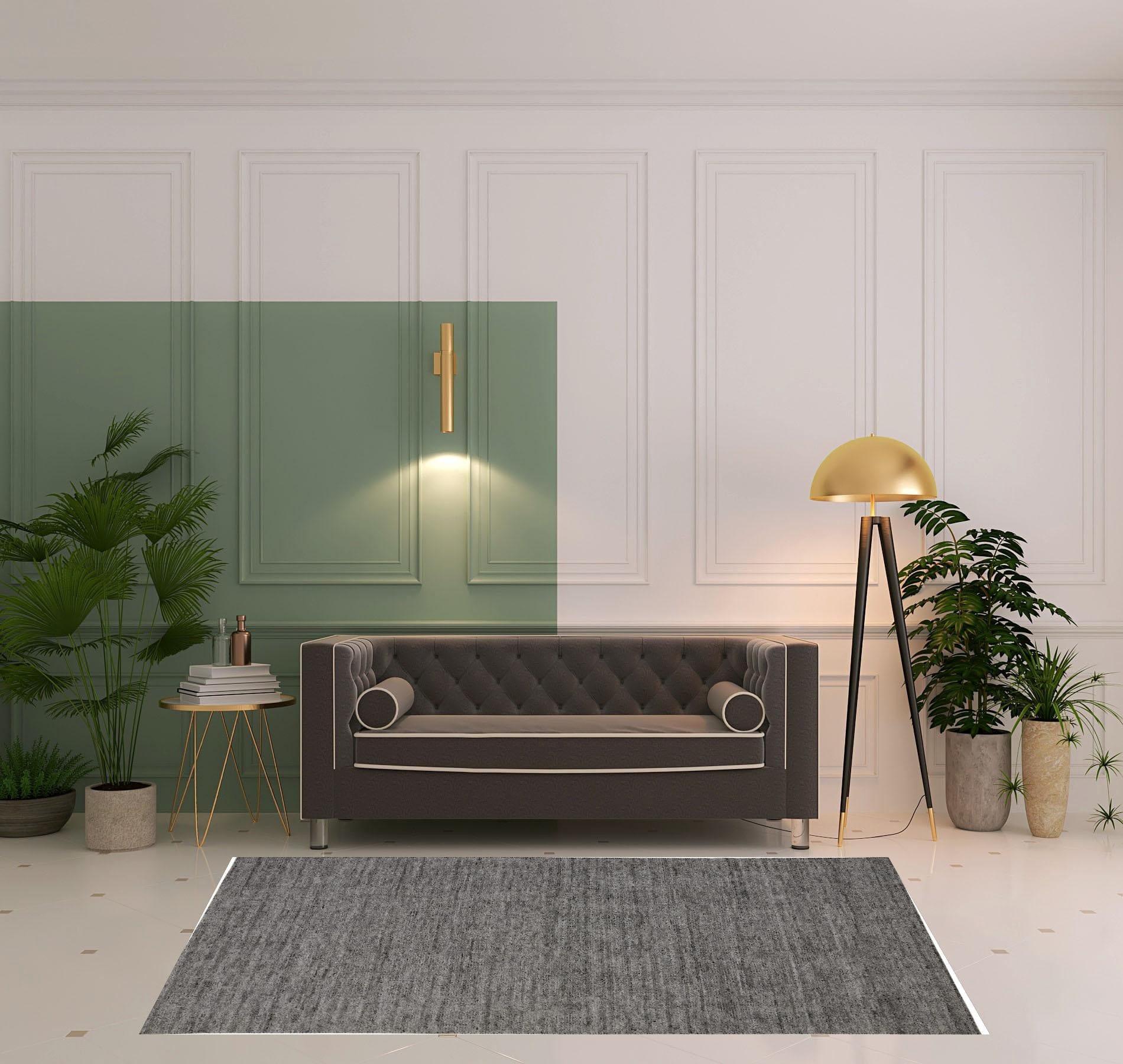 Add some artistry to your room with this 4' x 6' gray and black hand woven area rug. This rectangle shaped rug flaunts a gray and black color that will be a great way to accent your space. Solid colors are versatile and will blend with any existing decor style. Crafted by skilled artisans, this hand woven rug is genuine and unique. No two will be exactly alike. Area Rugs help to give warmth and sense of home to your space. 0.6" H x 42" W x 66" D