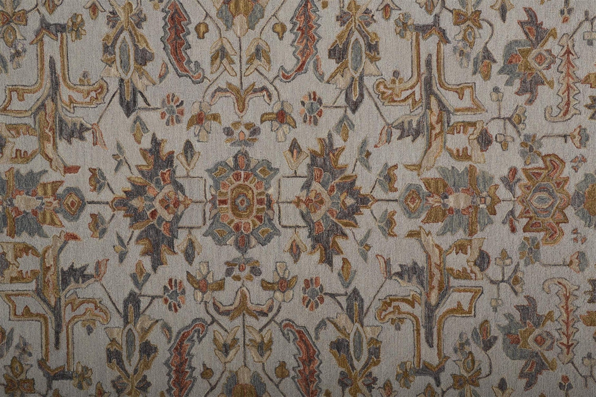 4' X 6' Gray And Gold Wool Floral Tufted Handmade Stain Resistant Area Rug