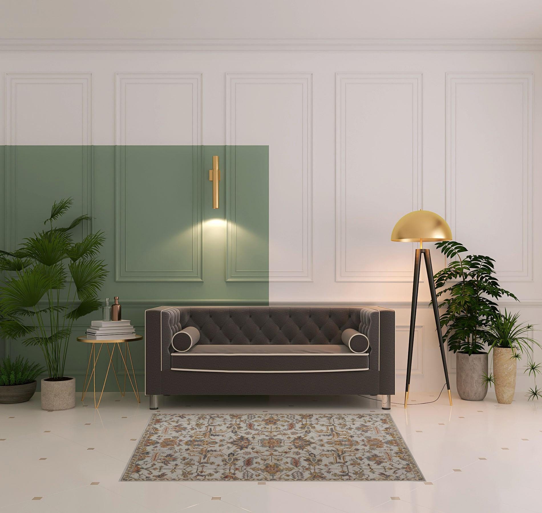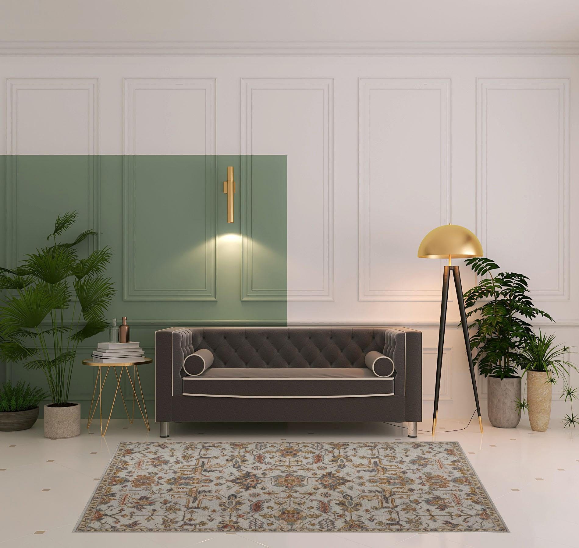 Add some artistry to your room with this 4' x 6' gray and gold wool floral tufted handmade stain resistant area rug. This rectangle shaped rug features a floral design in gray and gold to give it visual interest. A classic shape marries with good looking design for your space Ideal for spaces with kids and pets, this rug is stain resistant to help repel stains and spilled liquids. Place this area rug against a hardwood or tile floor and it will enliven your living space with style and sophistication. 0.37" H x 48" W x 72" D