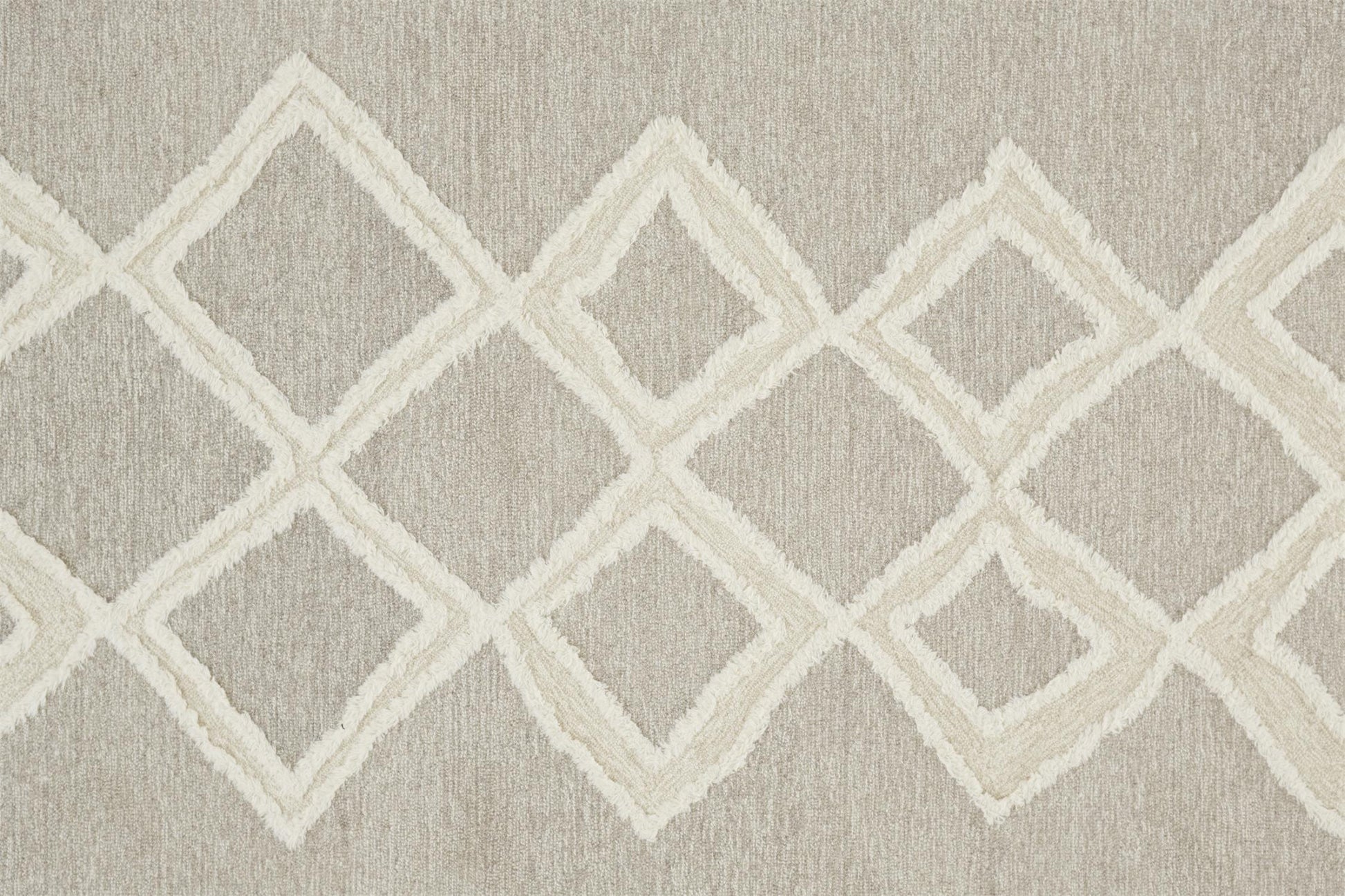 4' X 6' Gray And Ivory Wool Geometric Tufted Handmade Stain Resistant Area Rug