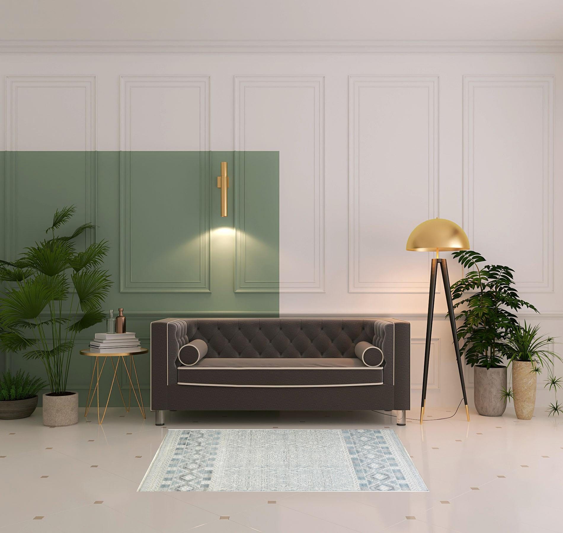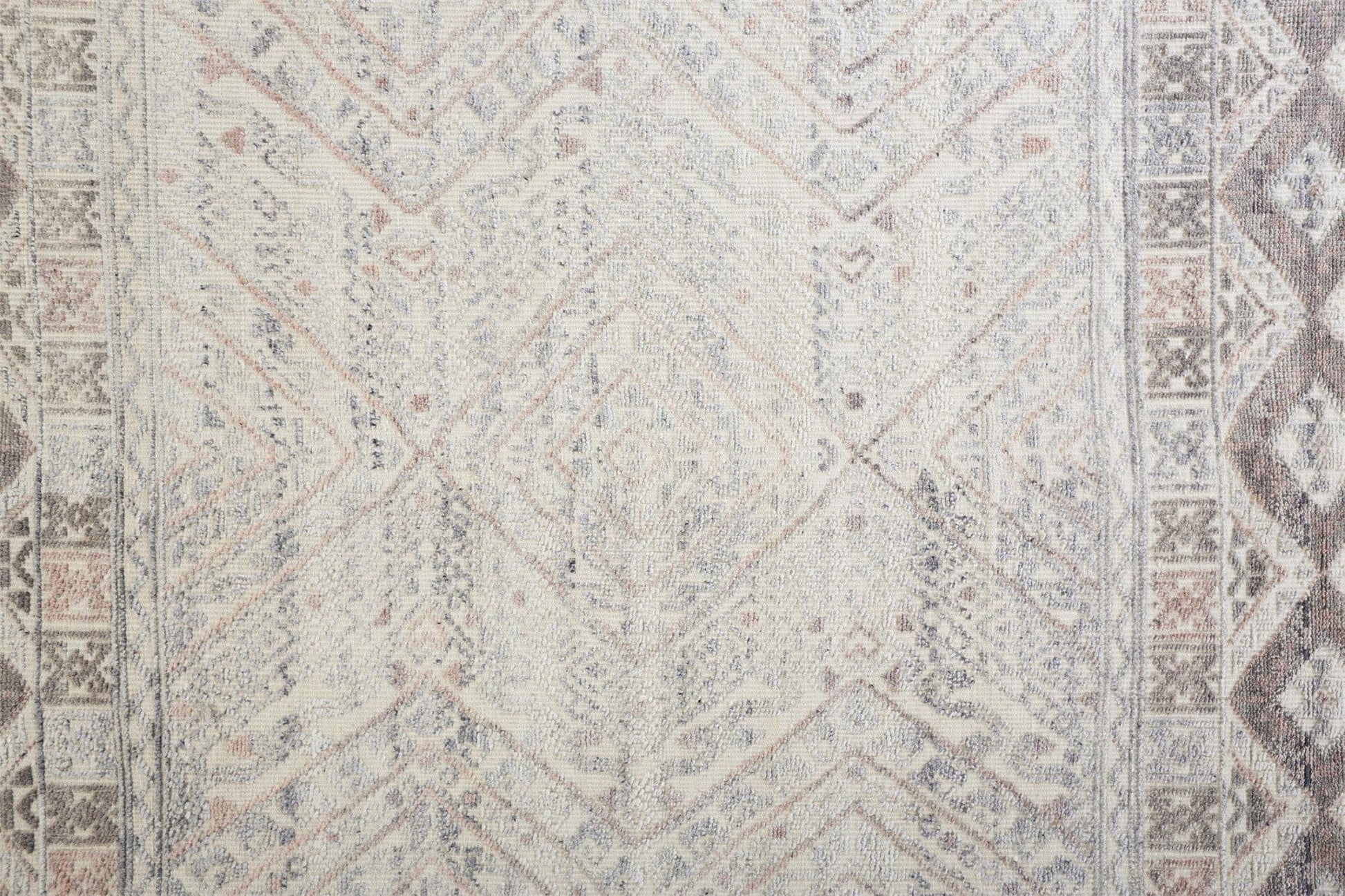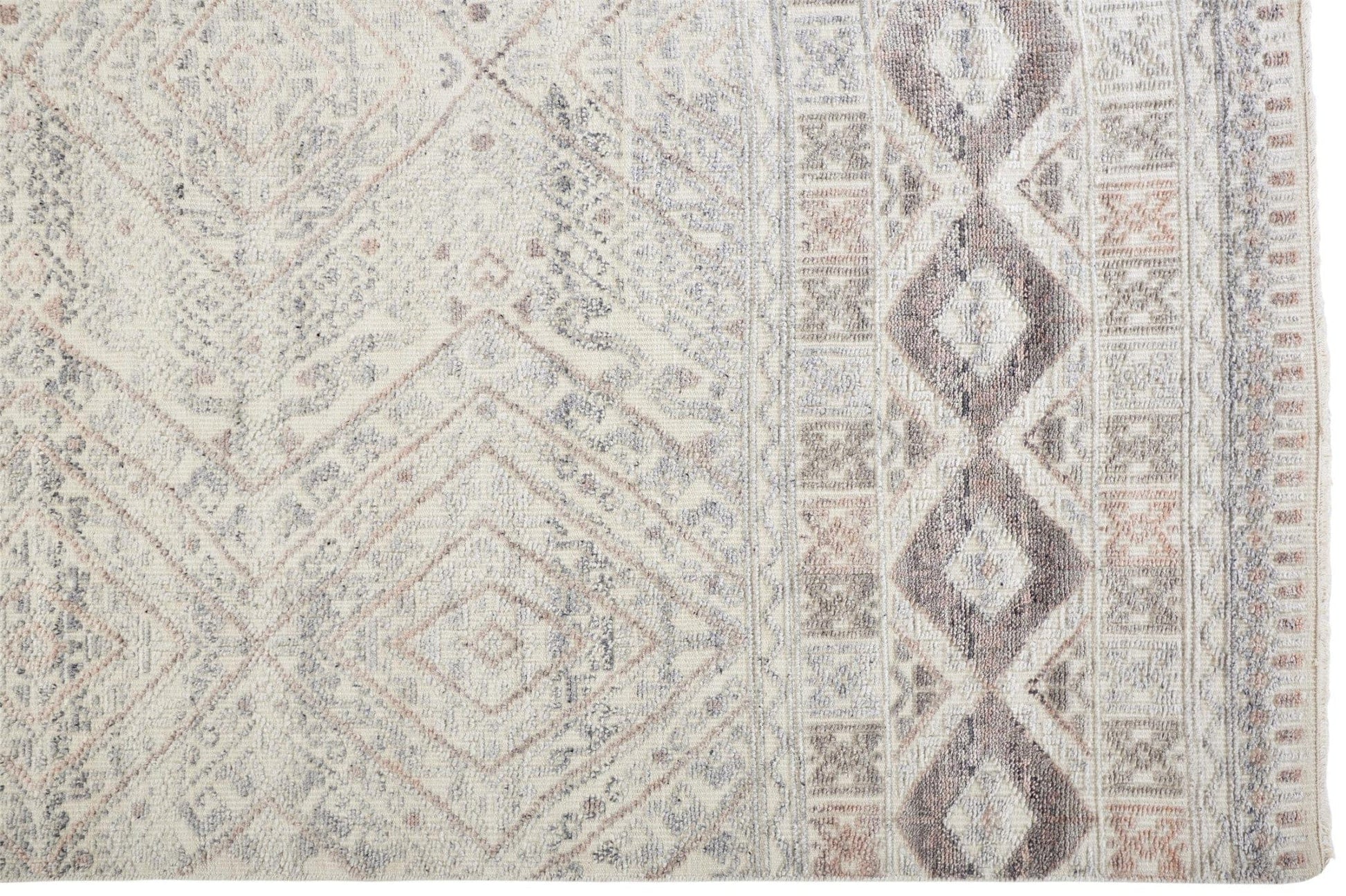 Set an inviting tone in your space with this 4' x 6' gray ivory and pink geometric hand knotted area rug. This rectangle shaped rug features a geometric design in gray ivory and pink to give it visual interest. A classic shape marries with good looking design for your space Crafted by skilled artisans, this hand knotted rug is genuine and unique. No two will be exactly alike. Place this area rug against a hardwood or tile floor and it will enliven your living space with style and sophistication. 0.31" H x 42" W x 66" D