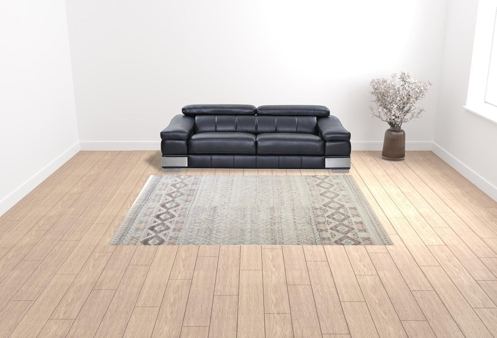 4' X 6' Gray Ivory And Pink Geometric Hand Knotted Area Rug