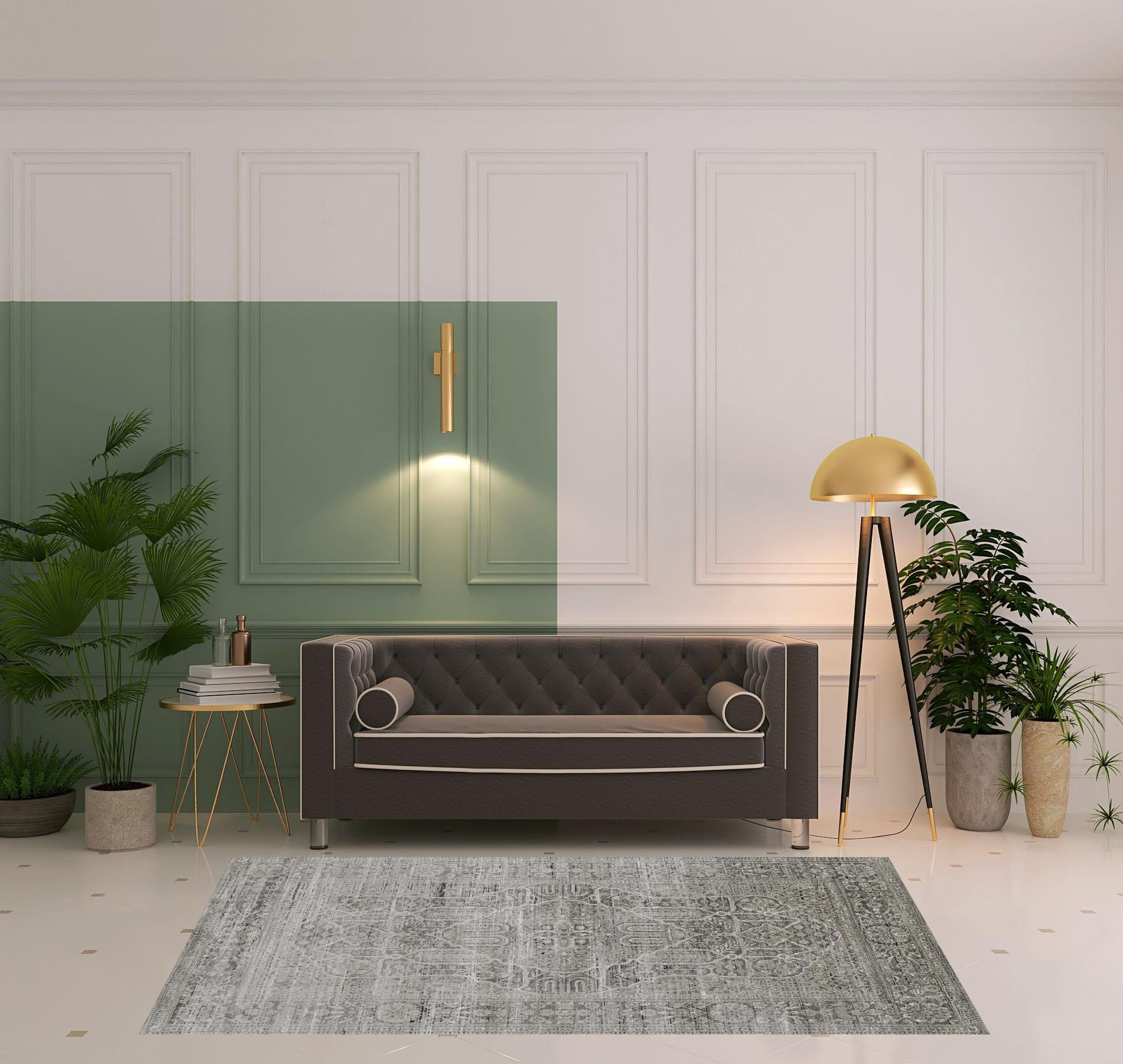 This 4' x 6' gray silver and taupe floral power loom distressed area rug, is a great way to add warmth to a room. This rectangle shaped rug features a floral design in gray silver and taupe to give it visual interest. A classic shape marries with good looking design for your space This superior Turkish rug represents the highest quality and is built to last. Place this area rug against a hardwood or tile floor and it will enliven your living space with style and sophistication. 0.39" H x 47" W x 72" D