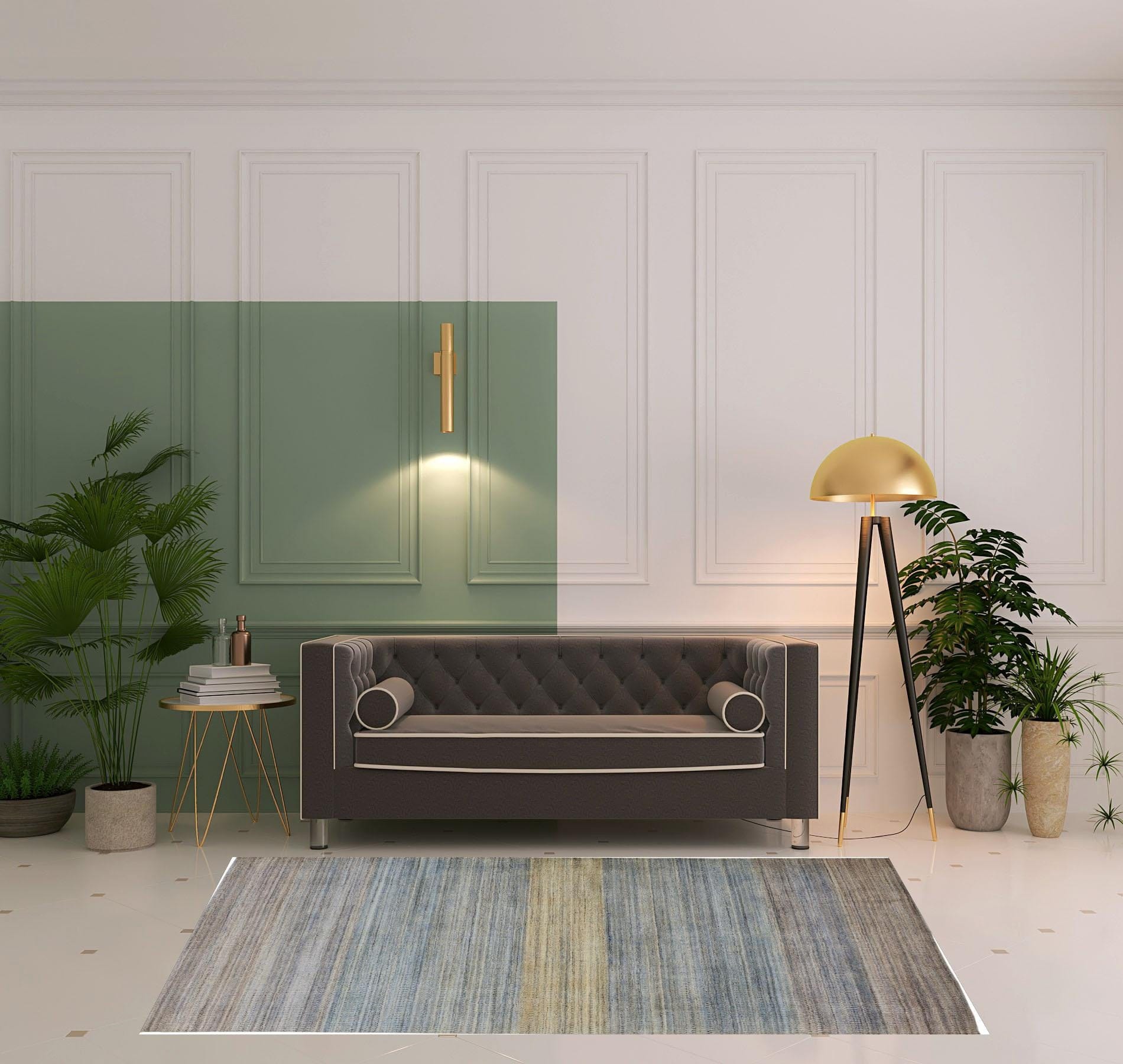 This 4' x 6' green blue and tan ombre hand woven area rug, is a great way to add warmth to a room. This rectangle shaped rug features a ombre design in green blue and tan to give it visual interest. A classic shape marries with good looking design for your space Crafted by skilled artisans, this hand woven rug is genuine and unique. No two will be exactly alike. Place this area rug against a hardwood or tile floor and it will enliven your living space with style and sophistication. 0.31" H x 42" W x 66" D