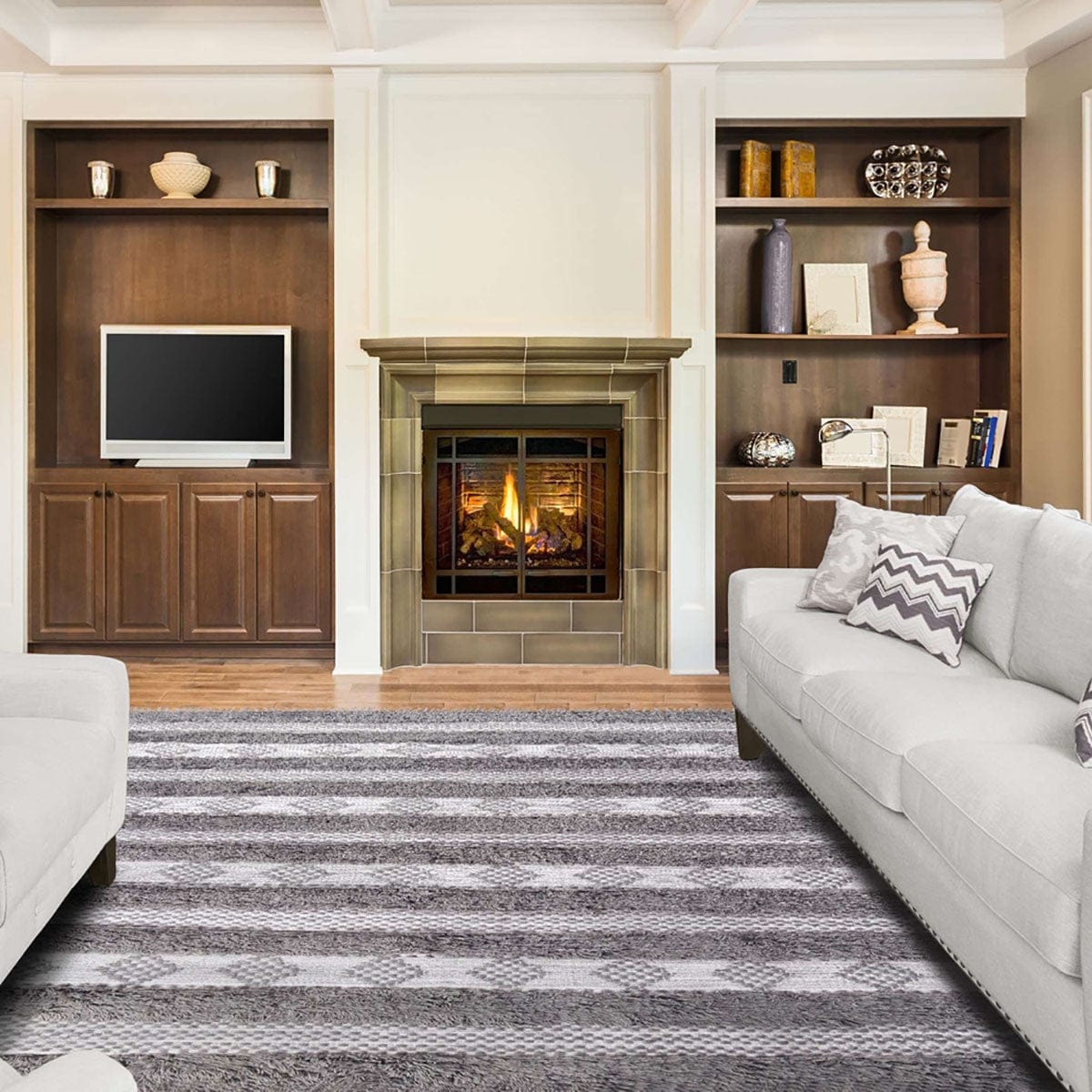 This 4' x 6' grey and silver wool striped flatweave handmade stain resistant area rug with fringe, is a great way to add warmth to a room. This rectangle shaped rug features a striped design in grey and silver to give it visual interest. A classic shape marries with good looking design for your space Made in Turkey, this rug offers high quality combined with good looking designer sensibilities. Ideal for spaces with kids and pets, this rug is stain resistant to help repel stains and spilled liquids. Tassel ends bring a timeless and fashionable look to your interior. Area Rugs help to give warmth and sense of home to your space. 1.38" H x 48" W x 72" D