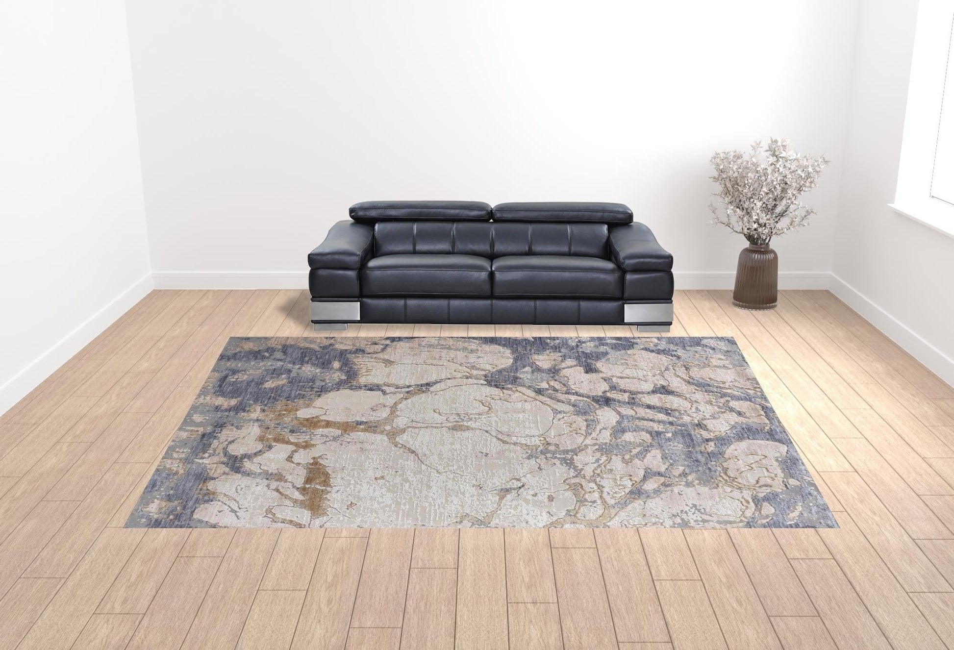 4' X 6' Ivory And Blue Abstract Power Loom Distressed Area Rug