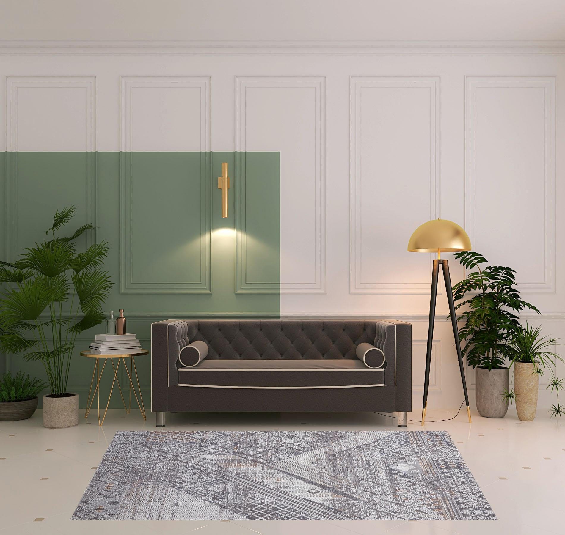 This 4' x 6' ivory and gray geometric power loom distressed stain resistant area rug, is a great way to add warmth to a room. This rectangle shaped rug features a geometric design in ivory and gray to give it visual interest. A classic shape marries with good looking design for your space Made in Turkey, this rug offers high quality combined with good looking designer sensibilities. Ideal for spaces with kids and pets, this rug is stain resistant to help repel stains and spilled liquids. Place this area rug against a hardwood or tile floor and it will enliven your living space with style and sophistication. 0.47" H x 48" W x 72" D