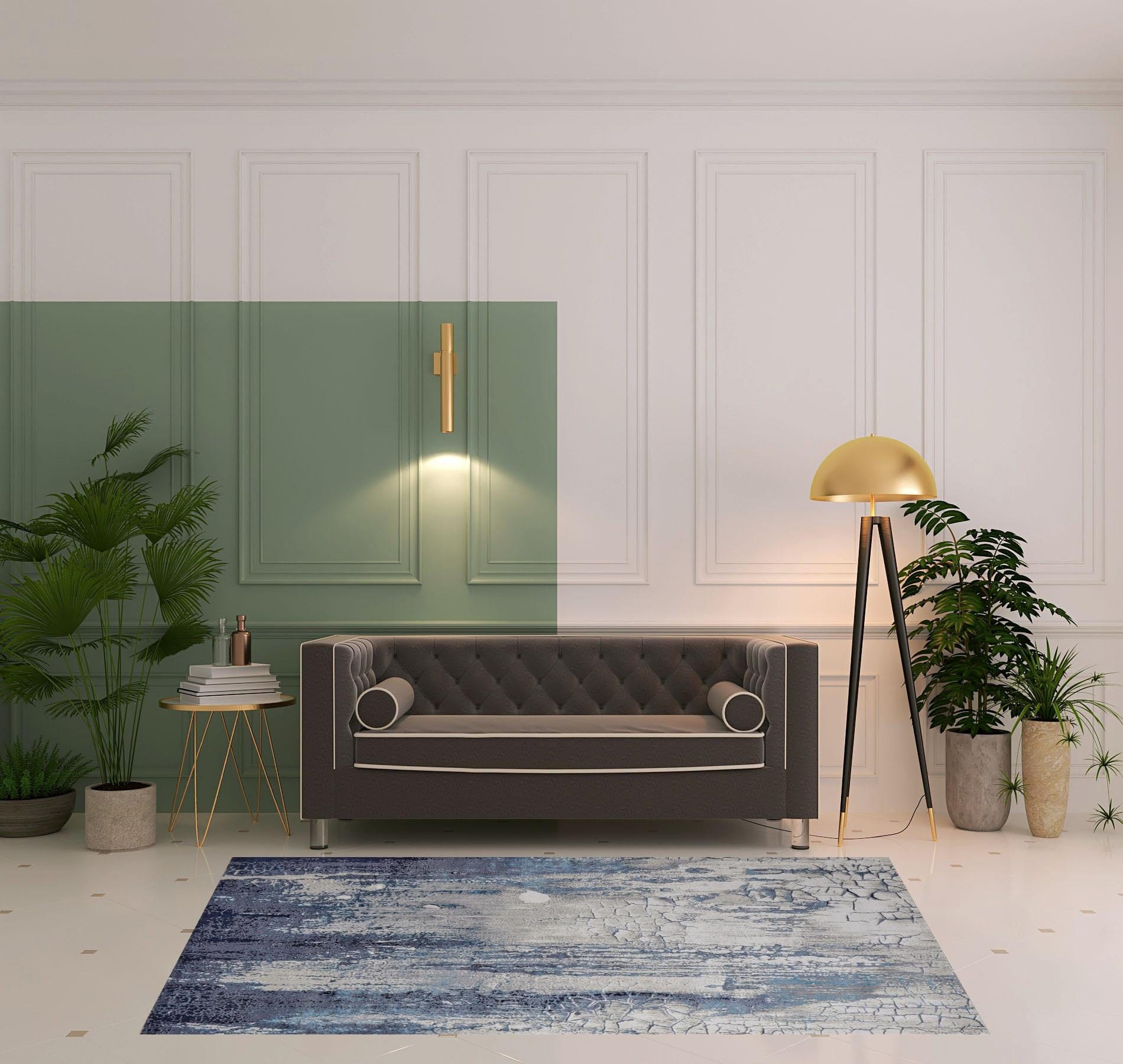 Add some artistry to your room with this 4' x 6' ivory blue and black abstract power loom distressed area rug. This rectangle shaped rug features a abstract design in ivory blue and black to give it visual interest. A classic shape marries with good looking design for your space Made in Turkey, this rug offers high quality combined with good looking designer sensibilities. Place this area rug against a hardwood or tile floor and it will enliven your living space with style and sophistication. 0.39" H x 47" W x 72" D