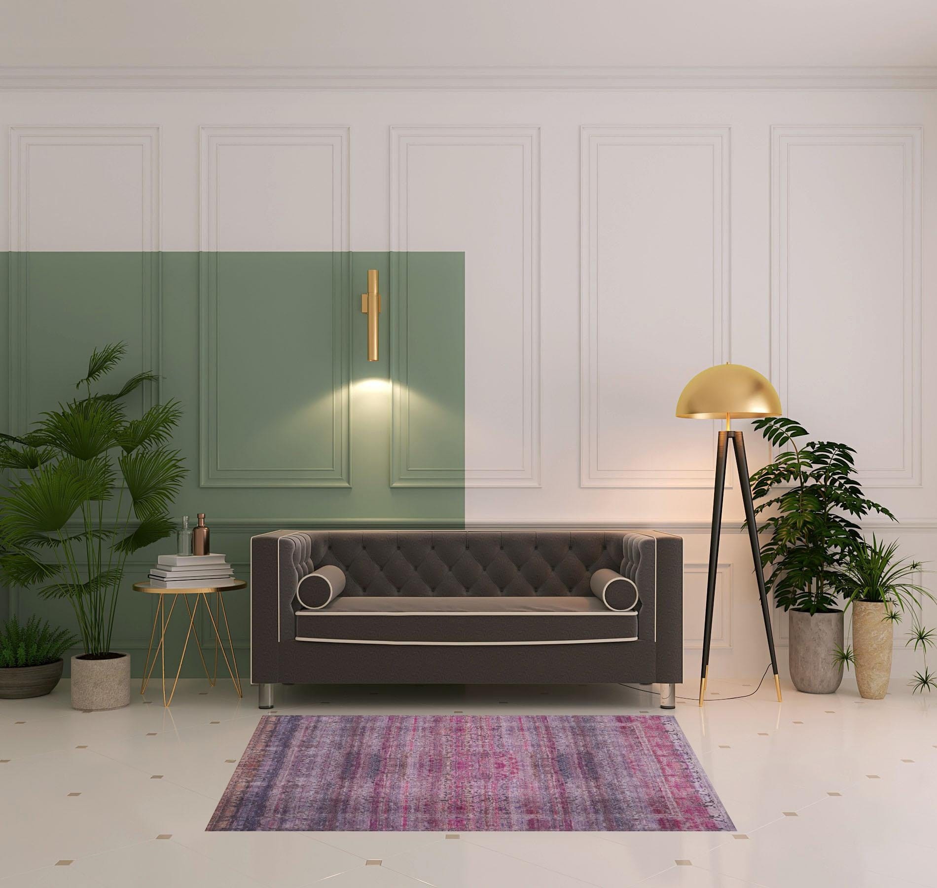 Add some artistry to your room with this 4' x 6' pink and purple floral power loom area rug. This rectangle shaped rug features a floral design in pink and purple to give it visual interest. A classic shape marries with good looking design for your space This superior Turkish rug represents the highest quality and is built to last. Place this area rug against a hardwood or tile floor and it will enliven your living space with style and sophistication. 0.24" H x 47" W x 72" D