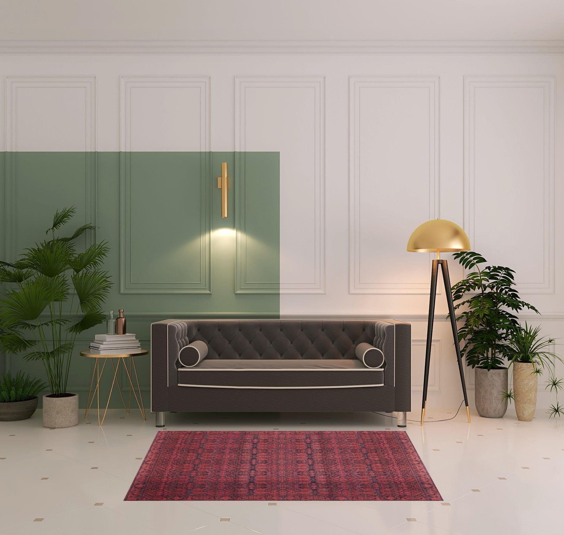 Add great coloration and comfortable texture to your space with this 4' x 6' red and black floral power loom area rug. This rectangle shaped rug features a floral design in red and black to give it visual interest. A classic shape marries with good looking design for your space This superior Turkish rug represents the highest quality and is built to last. Place this area rug against a hardwood or tile floor and it will enliven your living space with style and sophistication. 0.24" H x 47" W x 72" D