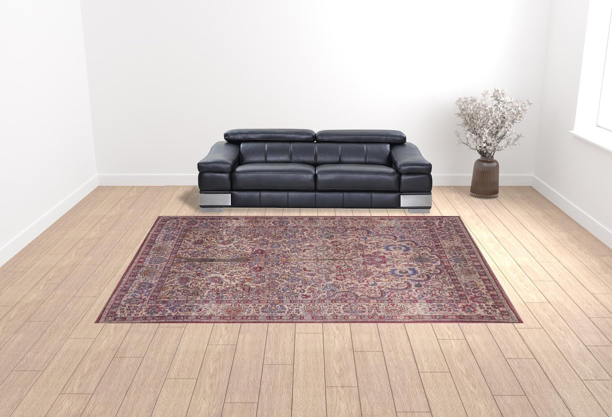 4' X 6' Red Tan And Pink Floral Power Loom Area Rug