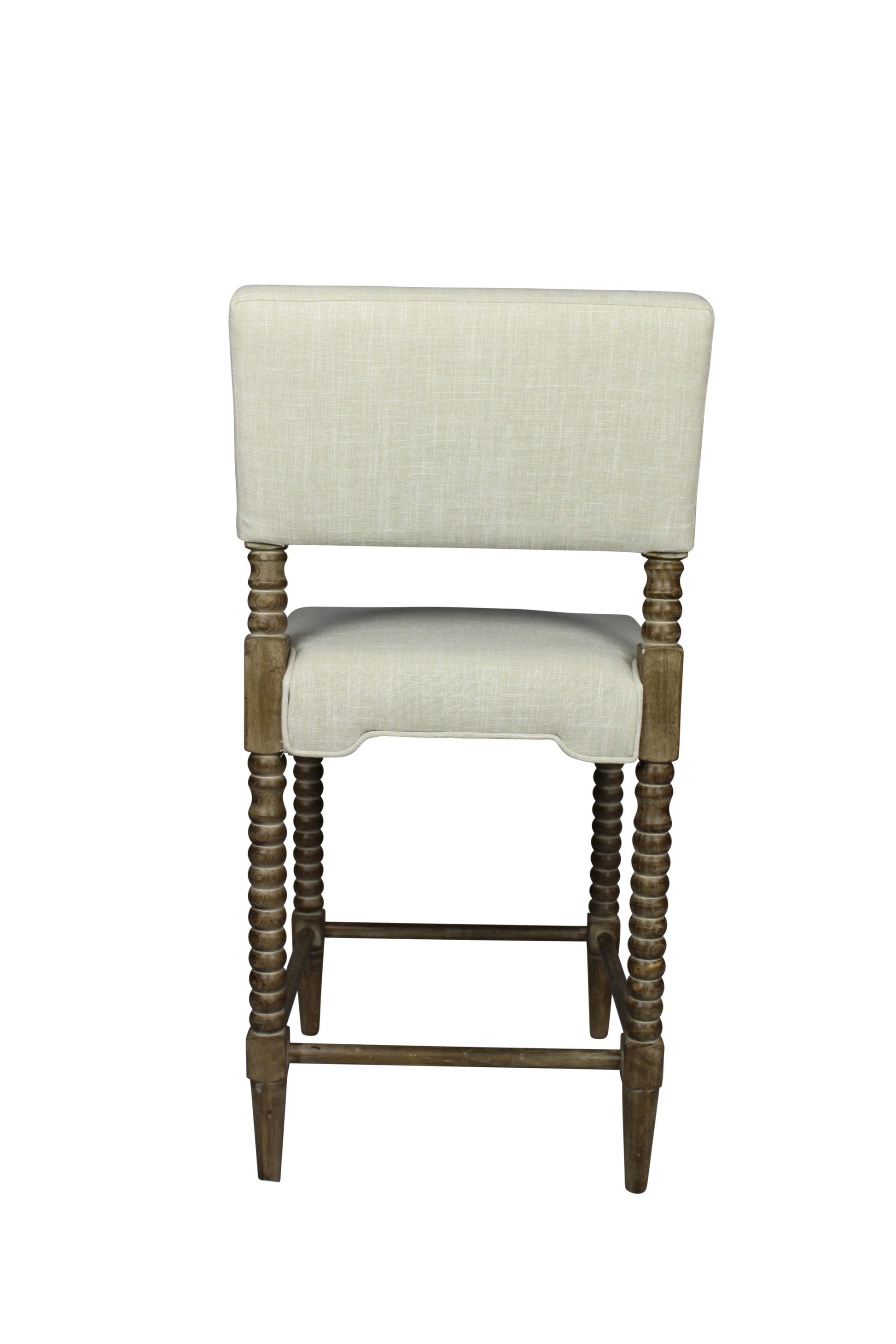 With this 41" brown carved wood and ivory woven upholstered counter height bar chair you can add design and extra seating to your space. Quality construction from light brown solid wood that has been beautifully hand- carved combines with a nice neutral linen fabric to give this stool a fresh and updated look. A full back mixed with a square shaped seat design makes this chair both comfortable and fashionable. This stool will look great in your dining room, kitchen, bar, or recreation room. 41" H x 20" W x 22" D